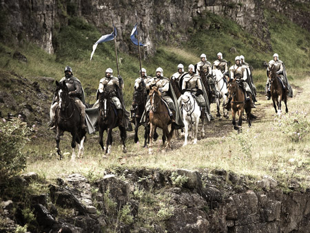 Синий стяг Арренов держит эта бригада, предводит которую сир Вардис Иган в исполнении Брендана МакКормака.