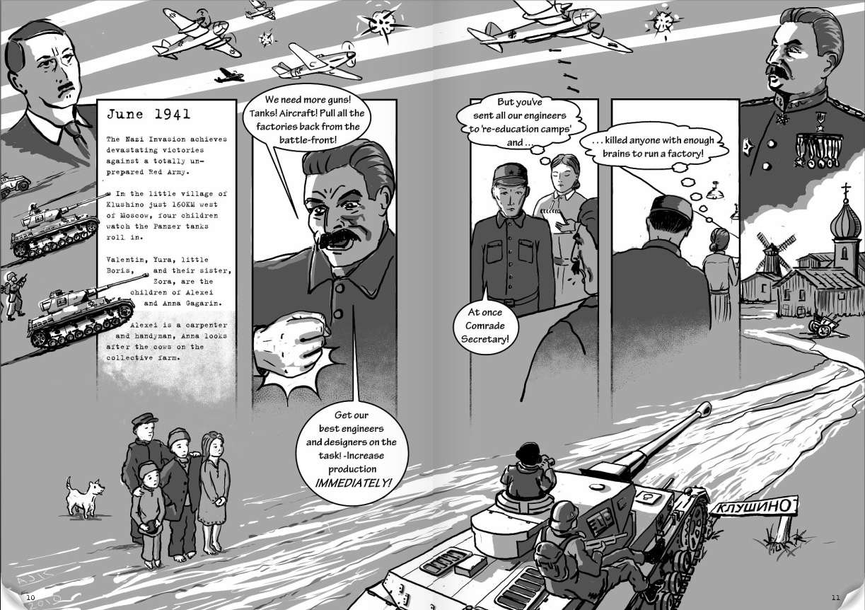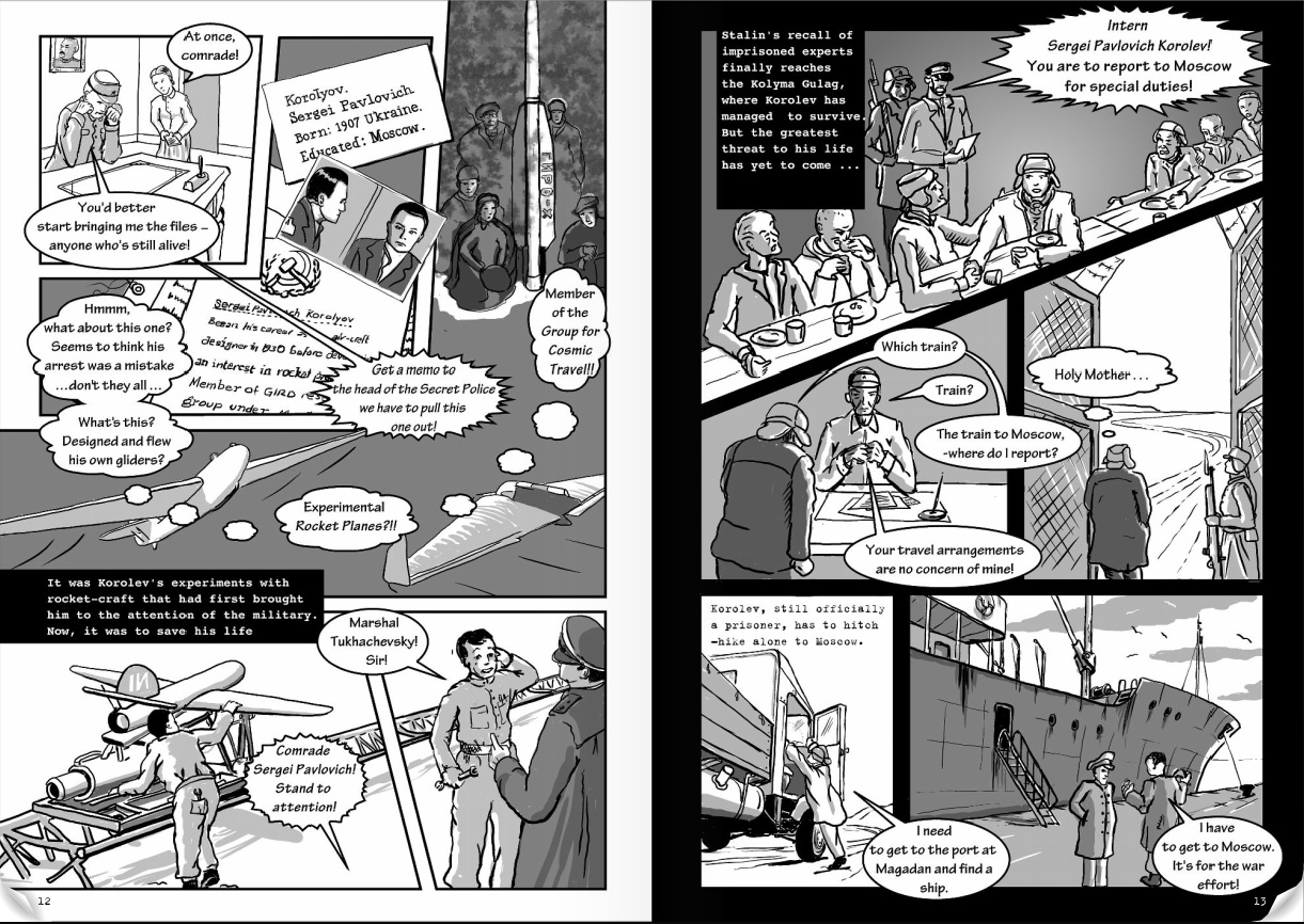 Помимо Гагарина, в комиксе идет речь о Сергее Королеве. Он спроектировал пилотируемый космический корабль «Восток-1», на котором Гагарин облетел Землю. Конструктор в 1938 году был арестован по обвинению во вредительстве, а затем шесть лет провел в лагерях. Повествование в комиксе начинается с момента ареста.