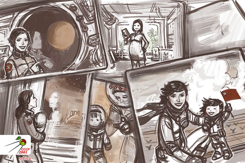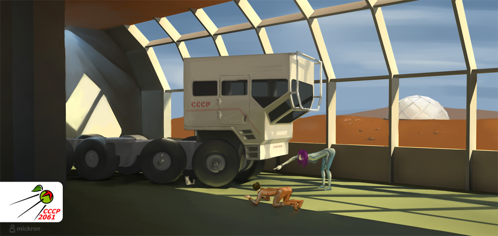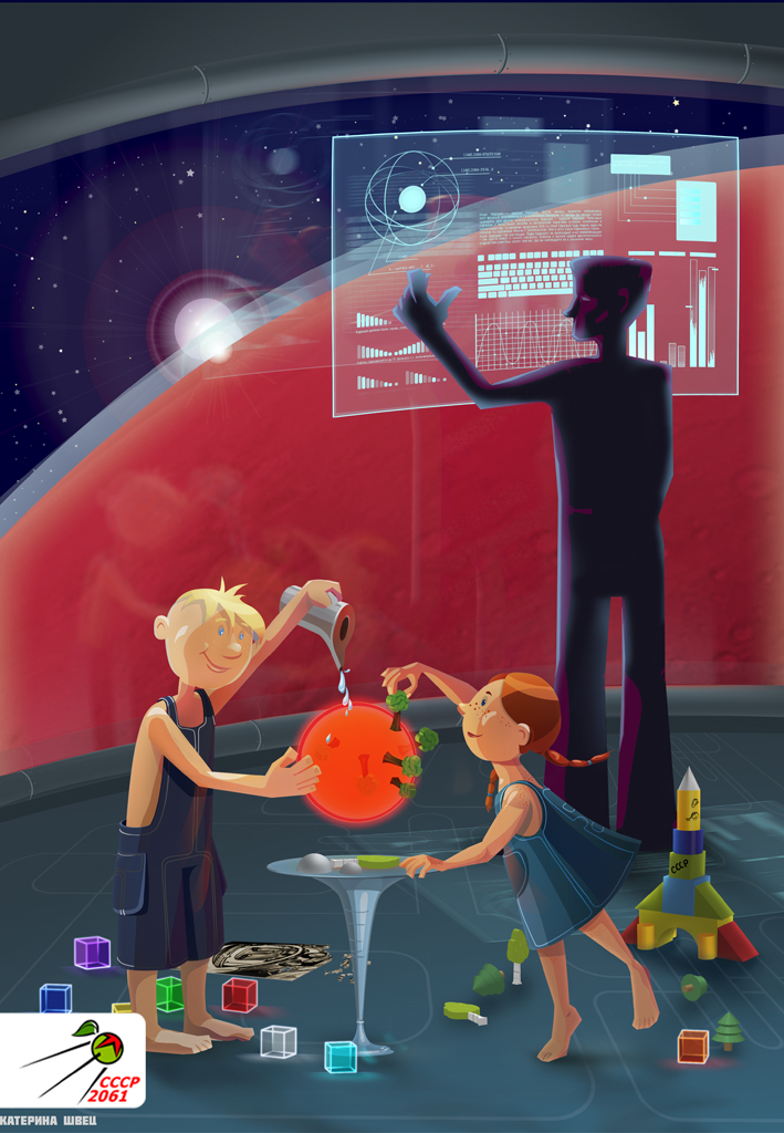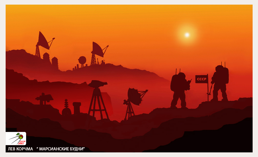 Мысль, как известно, материальна — и ровно через сто лет после гагаринского старта над главными базами некогда необитаемой планеты раскинулись гигантские климатические купола. Пусть под ними опасно и холодно, пусть до поры не хватает воздуха — в 2061 году СССР завершает первую стадию терраформирования Марса!