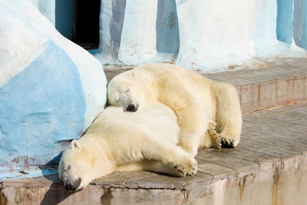 А белые медведи всегда собирают вокруг себя толпы восхищенных зрителей, ведь они такие веселые и каждый раз выдают забавные номера или просто мило спят.