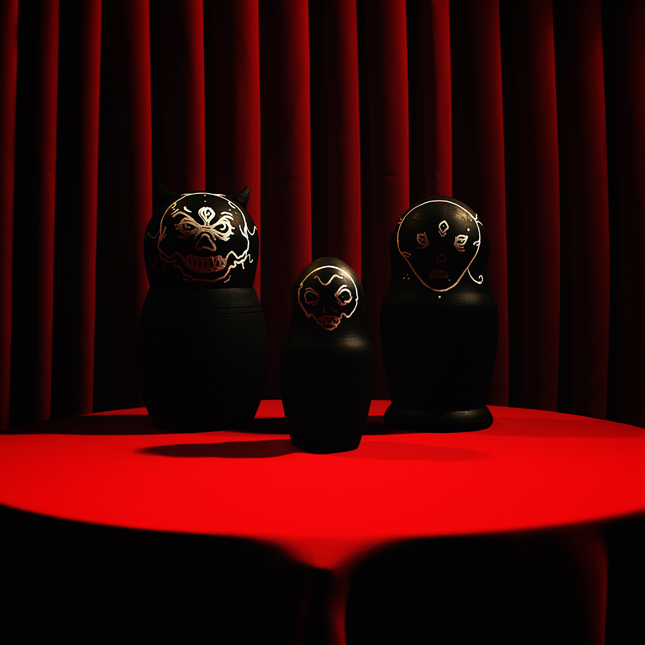 Матрешек разрисовал мой товарищ-художник Somn по моей просьбе. К сожалению, он мало где выкладывает свои работы, но кое с чем из них можно познакомиться в его уже почти мертвом жж.