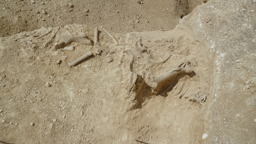 Изъятие куска грунта с костяком, для дальнейшего экспонирования в местном музее