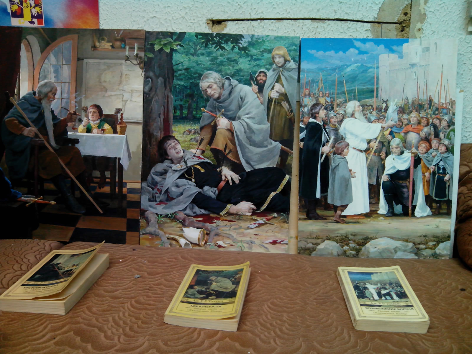 Во-вторых, что по моему мнению так ещё интереснее, выпустил «переиздание» северо-западной подарочной коробки «Властелина Колец» (1992) в оформлении наследующем именно то оформление, 1992 года. То есть спустя 22 года! Лично у меня с датами по этой теме какой-то когнитивный диссонанс: кажется, что старое-то издание было «совсем недавно». Так мы получаем уже некоторую традицию переиздания именно сочетания перевод-иллюстрация, как, например, «Хоббит» в переводе Рахмановой и с иллюстрациями Беломлинского (издание которого, АСТ, собственно, тоже предпринял) и книг, например, «Издательского Дома Мещерякова». Вот ещё нескольких фотографий художественных работ и фотографий изданий: