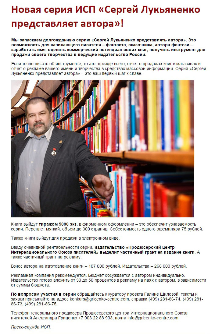 Вы здесь: Авторские колонки FantLab > Авторская колонка «vvladimirsky» > Не на правах рекламы: Сергей Лукьяненко представляет... |