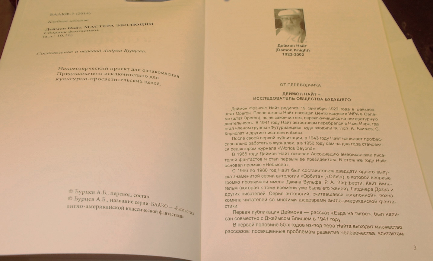 В седьмом томе «Библиотеки англо-американской классической фантастики» сборник Деймона Найта «Мастера эволюции».