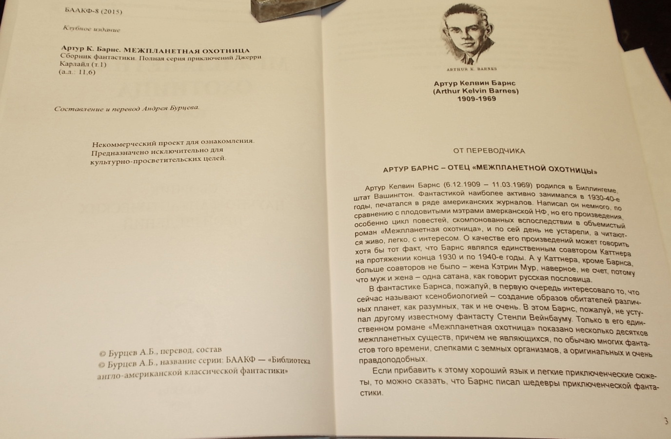 В восьмом томе «Библиотеки англо-американской классической фантастики» сборник фантастики Артура Келвина Барнса «Межпланетная охотница». Том 1.