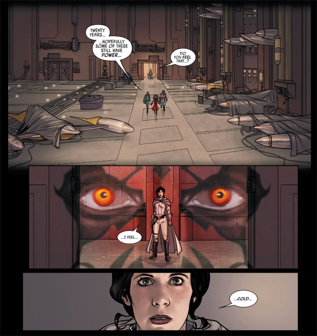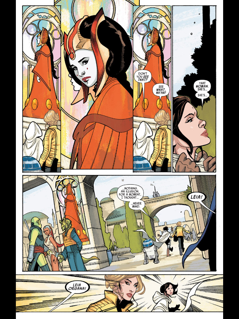 Для нового канона в комиксе припрятан приятный маленький момент, заключающийся в том, что Лея впервые попадает на Набу между 4 и 5 эпизодом. К тому же именно в этом отрезке Уйэд мимолетно кивает прошлому: