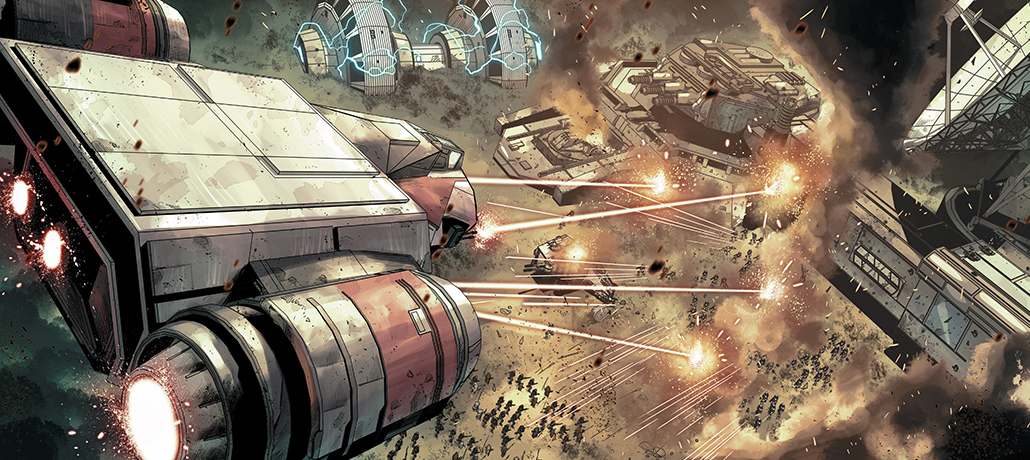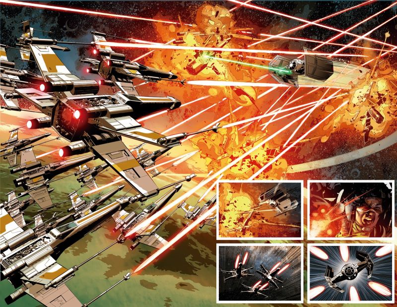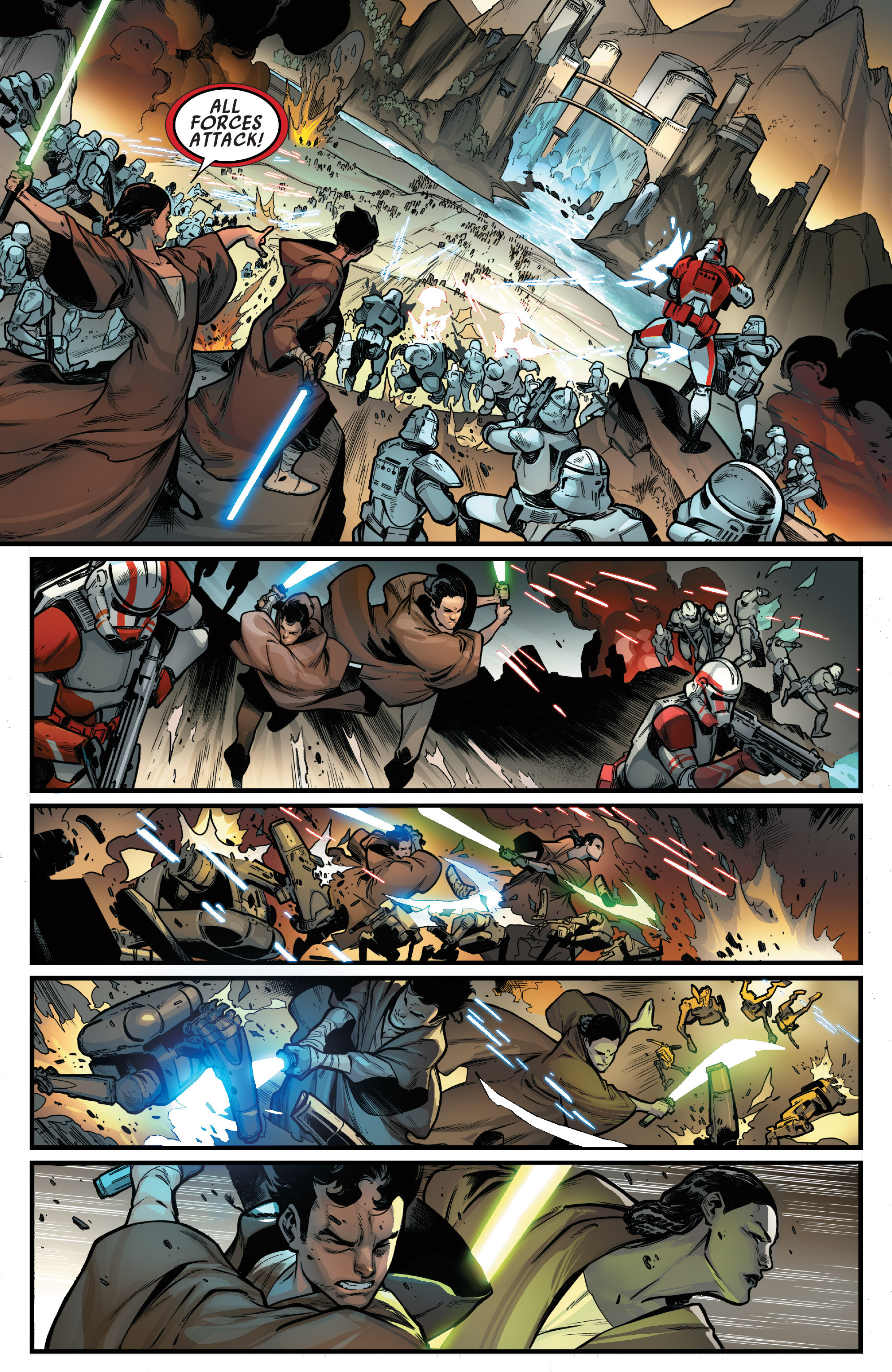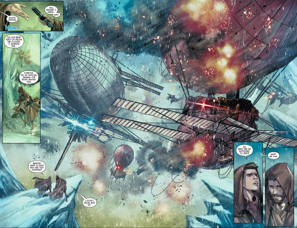 Чем комикс реально хорош, так это рисунком. Как я уже сказал — художник тот же, что и на Obi-Wan and Anakin, то есть Марк Чеччето, но здесь ему дают раскрыться на все 100%. Батальные сцены выглядят просто потрясающе, напоминая о том, что здесь идет галактическая война воистину эпических масштабов:
