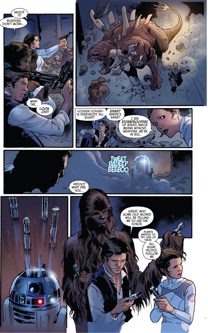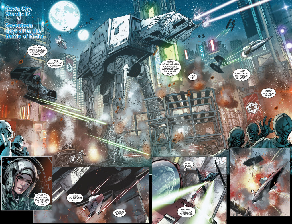 Впрочем, по сравнению с остальными комиксами, «Раздробленная Империя» преуспевает в подаче новой информации, хоть и делится ею по крупицам. Так, например, оказывается, что 1)у империи была еще одна база на Эндоре (так себе сюрприз), 2)