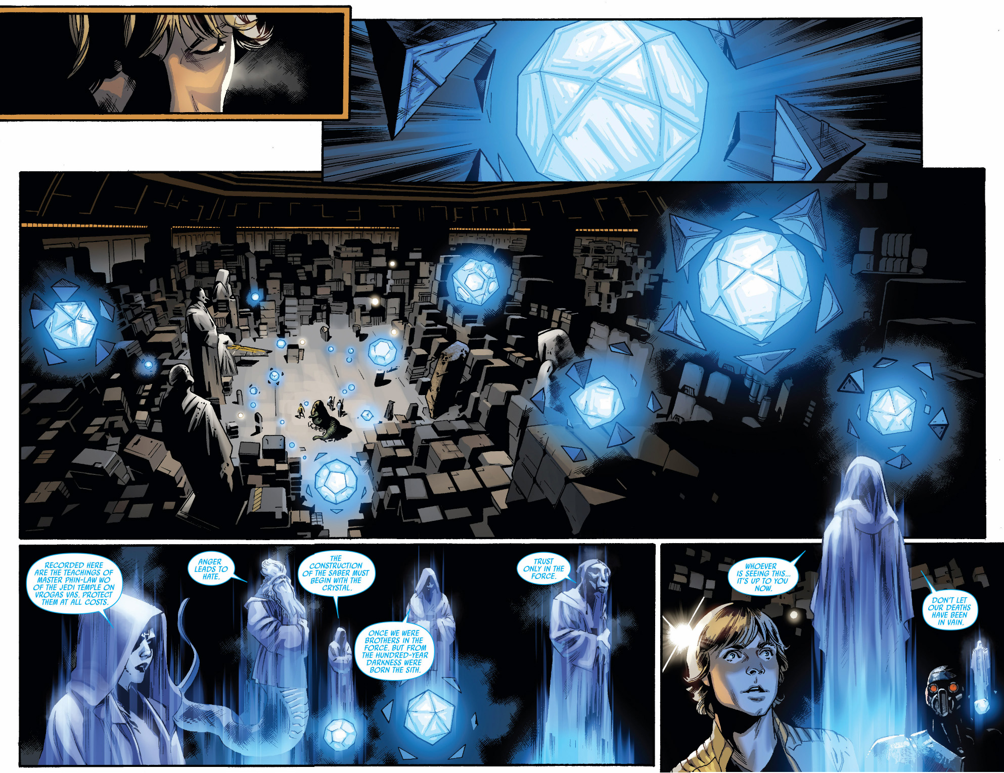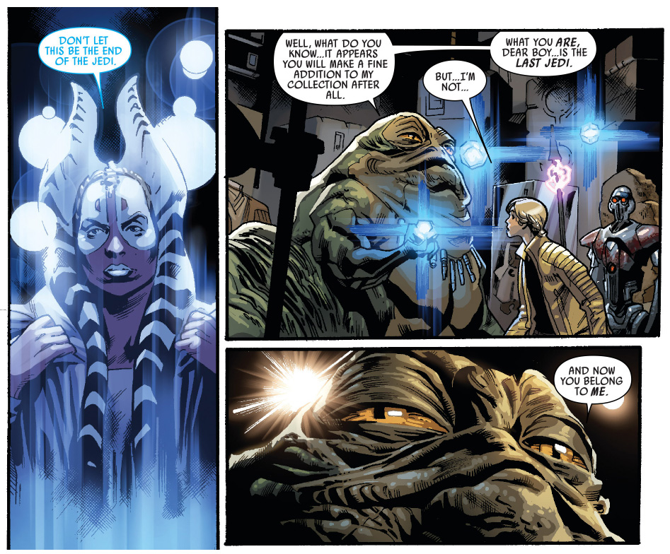 Первая история в сюжете задает настроение, а затем очень успешно разводит героев по разным уголкам галактики. Причем, везде создается нужное настроение — в линии Хана и Леи полно типичных Хановских «упс, кажись мы попали», а в линии Люка много исследования прошлого и поисков себя. Кстати, в этой последней ветке, Аарон успешно апеллирует к чувству ностальгии читателя, гораздо более тонко, чем 7 эпизод кинофраншизы. К примеру, когда во втором сюжете, Люк попадает