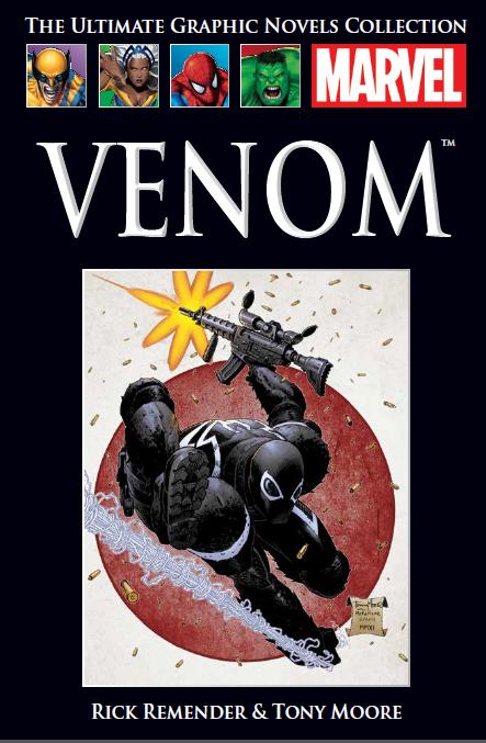 67) «Веном». Внутри: Venom # 1—5, 120 стр. Сценарий – Рик Римендер, рисунок – Тони Мур. Флэшу Томпосону, ставшему инвалидом после войны в Ираке, предлагают участие в секретной правительственной программе. Он должен стать новым «хозяином» зловещего инопланетного симбиота Венома. Дополнительные материалы: история Венома и биография художника.
