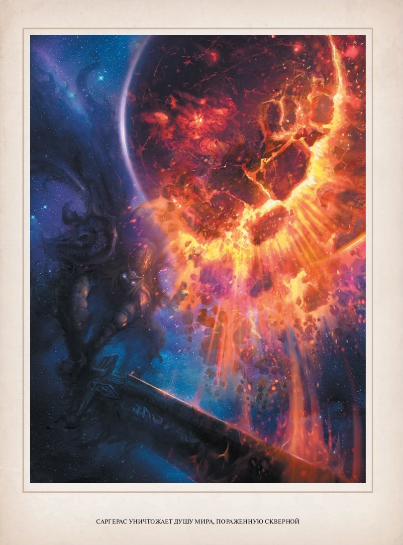 (25 широкомасштабных полноцветных композиций), картами Азерота, космологическими схемами, и изящными рисунками тушью работы художника Джозефа Лакруа.