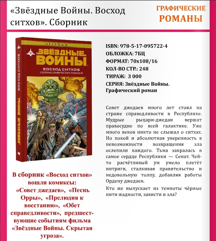 Также в планах издательства выпустить сборник «Звездные войны. Восход ситхов».