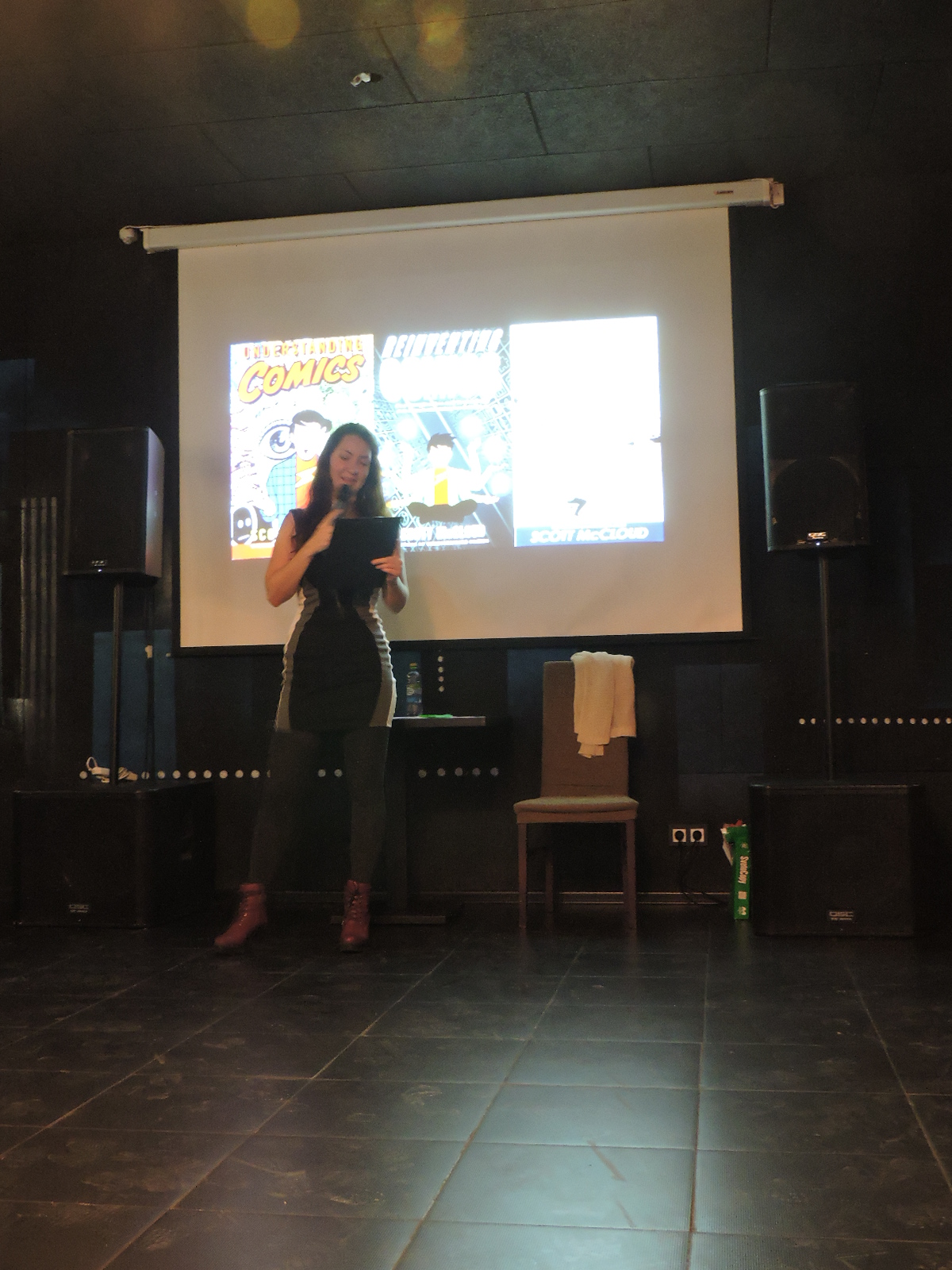 В рамках фестиваля прошла презентация комиксов творческого объединения «Бренник-Артс», в ходе которой Алексей Гордеев рассказал подробнее о серии комиксов «Chapiteau. Одним богом больше», повествующей о мире подсознания, а соавтор Алексея — Владимир Кабанов рассказал о серии «Коробка» (комиксы «Дети похмелья» и «Наказание») — фантастическом жизненно-абсурдном боевике про секретных агентов. Интересно было узнать, что идея «Коробки» родилась из мифологии школьной компании авторов. К сожалению, презентация получилось довольно короткой. С лекцией о комиксах и мастер-классом «Комикс. С чего начать? И как закончить» выступила Наташа Соло, но т.к. из пришедших большинство оказались читателями, а не авторами комиксов, то Наташа больше внимания уделила лекционной части, в которой рассказала об истории комиксов, о знаковых работах и жанрах комиксов, о работе над сценарием, структуре сценария и важности конфликта в комиксе. Заключительная лекция называлась «Комиксы любишь? Давай с нами!»: как организовать комикс-клуб и что с ним потом делать», а провела ее сотрудник Российской государственной библиотеки молодежи (Москва) Юлия Канунникова (Salema Ru). В своей лекции Юлия рассказала об истории Центра комиксов и визуальной культуры РГБМ, о действующих в нашей стране клубах комиксов, но очень быстро лекция перешла в оживленную дискуссию и обсуждение, как построить в Нижнем Новгороде свой комикс-клуб, на какой площадке этой лучше сделать, как и где о нем рассказывать.