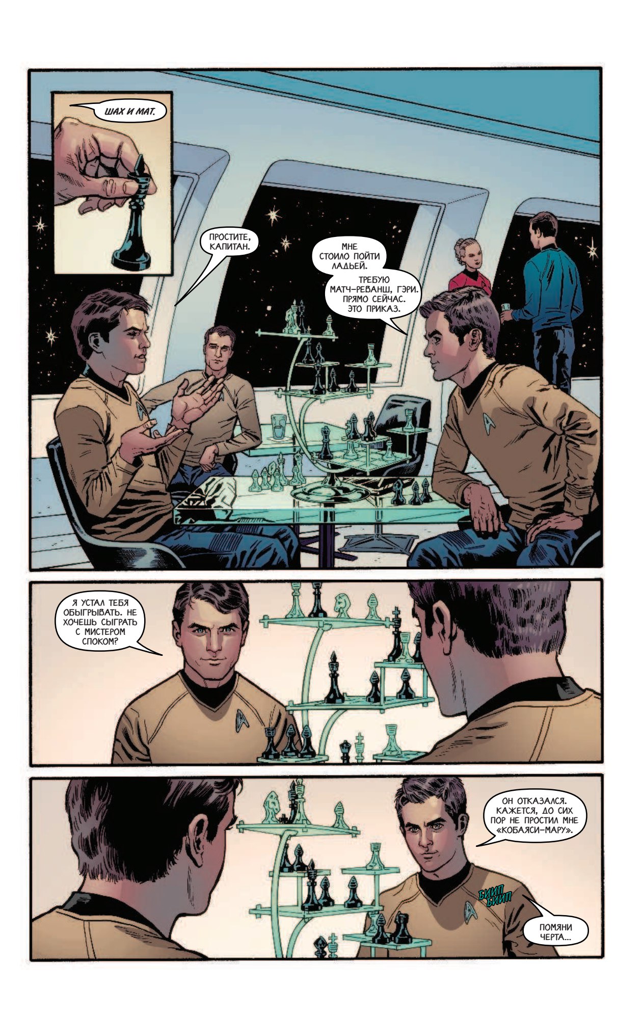 Как и в предыдущих томах «Обратный отсчет» и «Нерон», действие этого комикс разворачивается в обновленной вселенной Star Trek. Главными героями выступает команда звездолета «Энтерпрайз» — та самая, которую вы могли видеть в последней трилогии фильмов.