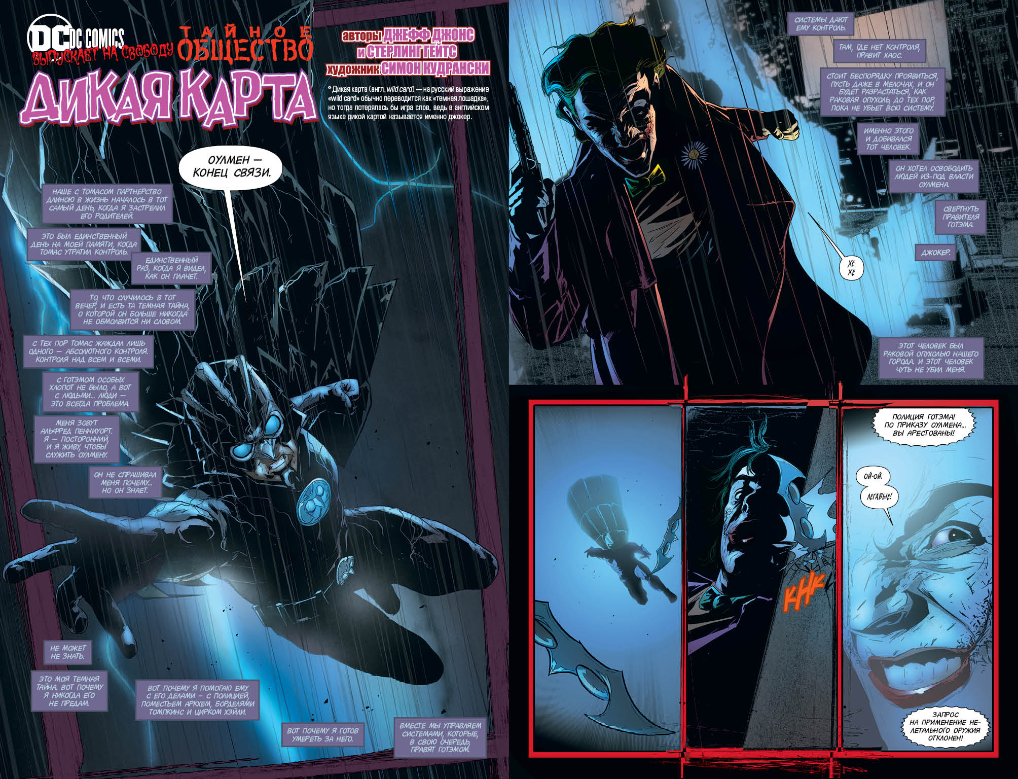 Перед вами «Лига Справедливости. Тайное общество» Джеффа Джонса и Стерлинга Гейтса — фрагмент масштабной истории, который добавит несколько интересных нюансов в общий сюжет. Сразу оговоримся, что читать сингл в отрыве от «Вечного зла» и «Вечных героев» вряд ли будет иметь смысл, ведь в сингле рассказывается история Оулмена, Найтвинга и Джокера с Земли-3.