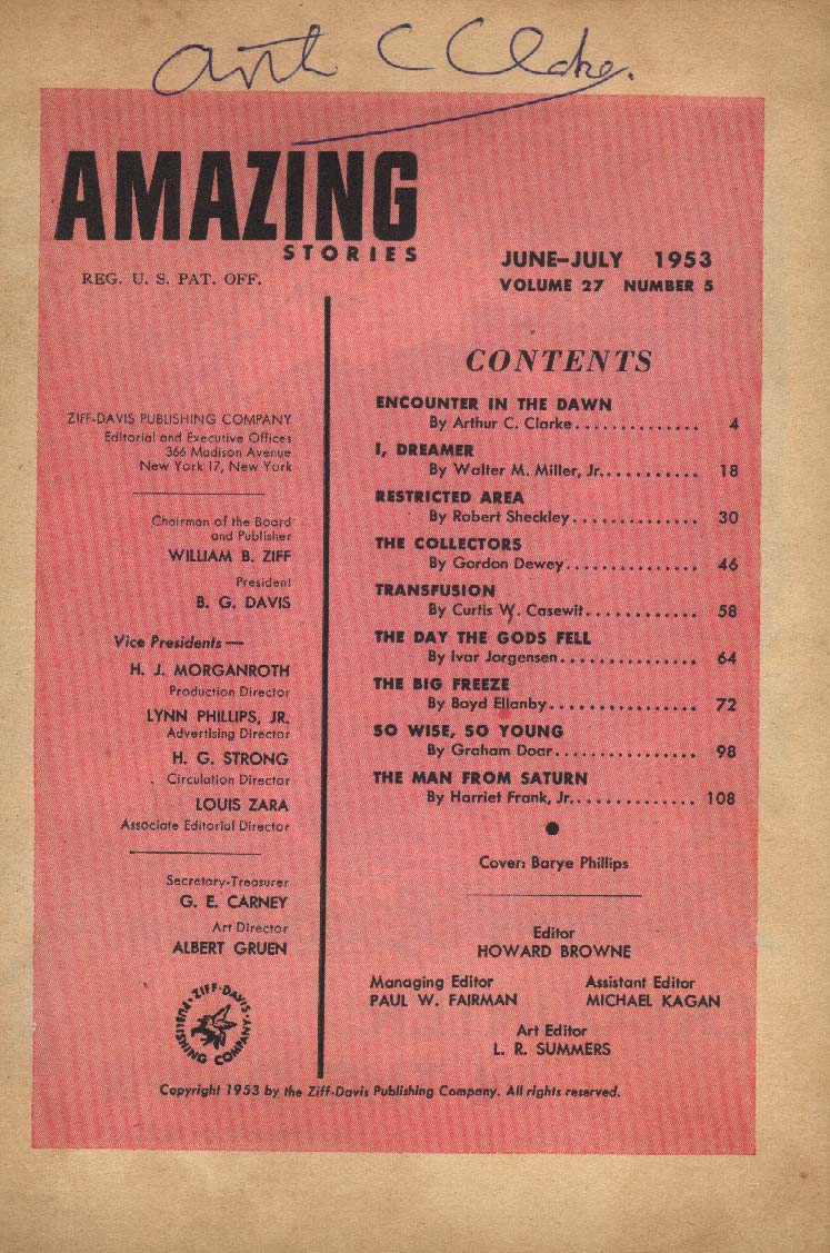 - Первая публикация в журнале «Amazing Stories», июнь/июль 1953, стр. 4–17.
