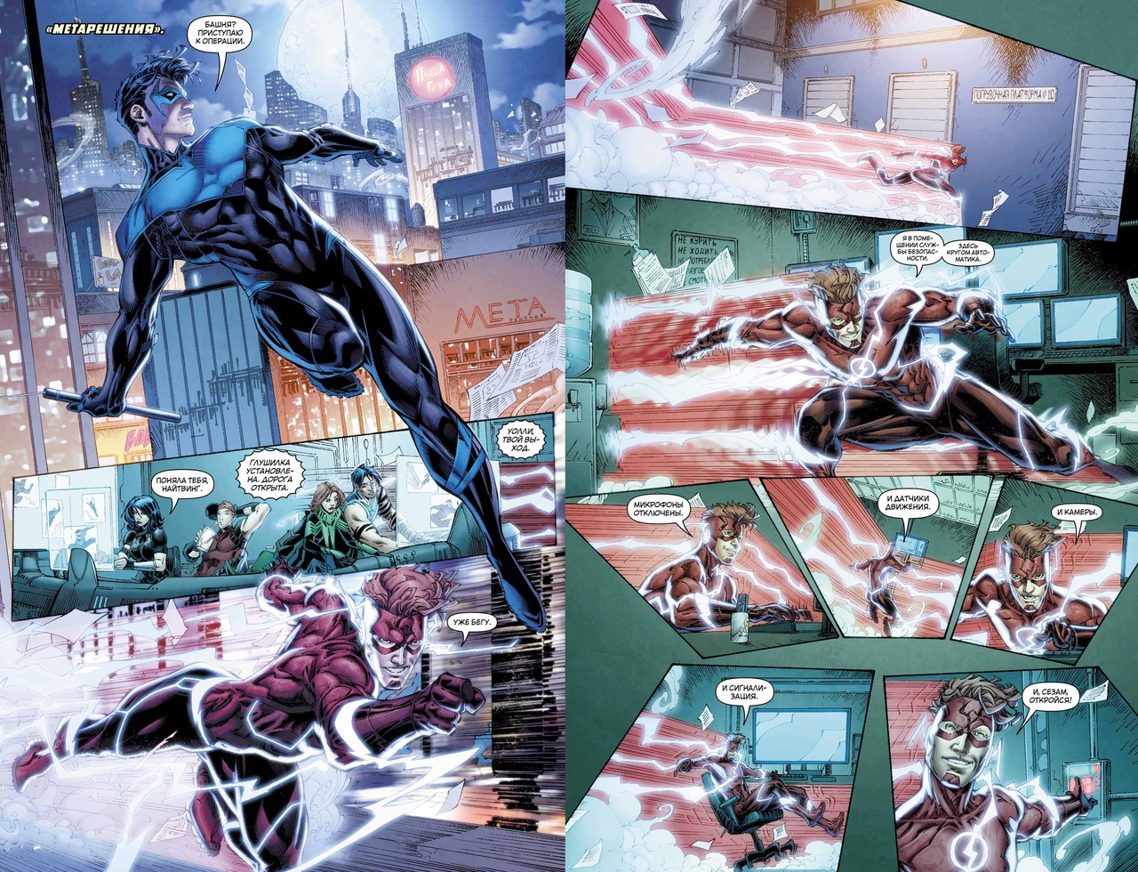 В команде Титанов появляются новые герои, в истории Красного Колпака – новые крутые повороты. Мэл и Карен. Когда-то он был супергероем – в другой жизни. Он отказался от своей силы. Она открыла в себе суперспособности и не знает, как ей быть. Им просто хочется быть вместе и жить нормальной жизнью. Отказаться совсем или научиться контролировать свои способности? Корпорация «Метарешения» поможет принять решение. Во благо их помощь или во вред? Красный Колпак был уверен, что всё под контролем, пока воплощал в жизнь гениальный план по внедрению в криминальную империю Чёрной Маски. Укротить Бизарро? Всё, что пожелаете, босс, если доверите мне свои планы. Только у Романа давно припрятан козырь в рукаве. Мы свои козыри выкладываем на стол: в печать ушел очередной сингл с сериями Титанов и Красного Колпака! Пятый сингл-перевертыш включает в себя выпуски: Титаны. Сделано на Манхэттене #8-9: Быть или не быть, Сломанное жало. Красный Колпак и Изгои. Темная троица #4: Одна команда. Технические параметры издания: формат — 170×260; объём — 64 страницы; обложка + т/у 12+