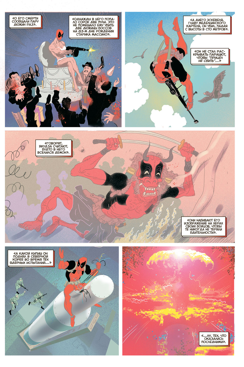 Дэдпул MAX. Полное издание Твёрдый переплёт, 416 страниц, 163х245 Суди психа по делам его! Уэйд Уилсон — самый опасный и ценный наёмник, работающий на Дядю Сэма; Например, автомату Калашникова, нужна рука. — Боба, работа над Боба. Это сломанные кости и психологические травмы для того, чтобы доказать. Этот психопатический дуэт становится на путь саморазрушения, попутно уничтоженных бандитов, террористов, правительства, шлюшек с пушками, собственно жуткого прошлого и своих возлюбленных. Во всех отношениях, когда они сталкиваются со всеми ужасами, накопившимися в своих собственных душах. В книге собраны комиксы «Дэдпул МАКС» № 1, 2, 4–12, «Дэдпул МАКС 2» № 1–6 и «Дэдпул МАКС. Рождественский спецвыпуск »от сценариста Дэвида Лэпхема и художники Кайла Бейкера, Шона Кристала и Дэвида Лэпхема. СТРОГО 18+. СОДЕРЖИТ СЦЕНЫ НАСИЛИЯ, УПОТРЕБЛЕНИЯ НАРКОТИКОВ И СЕКСА. ЭТОТ КОМИКС НЕ РЕКОМЕНДУЕТСЯ ЧИТАТЬ НИКОМУ.