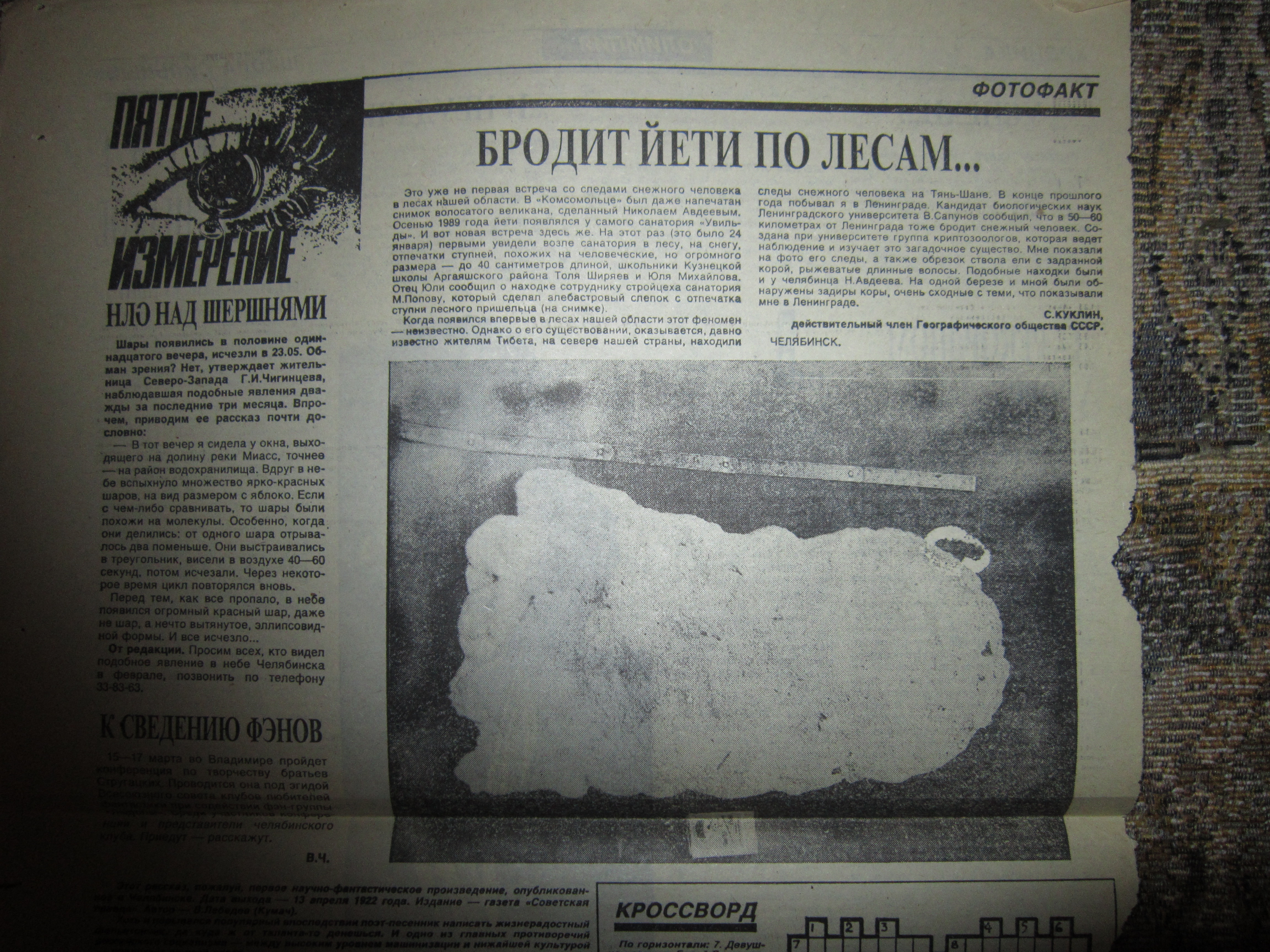С приходом «оттепели» в СССР поднялись волны псевдонаучных исследований. Я о «снежном человеке» узнал из журналов Техника-молодежи за 1957-58 годы. Потом подобные материалы неоднократно печатались в журналах Т-М и З-С. Также выходило несколько брошюр о поисках снежный людей (йети)