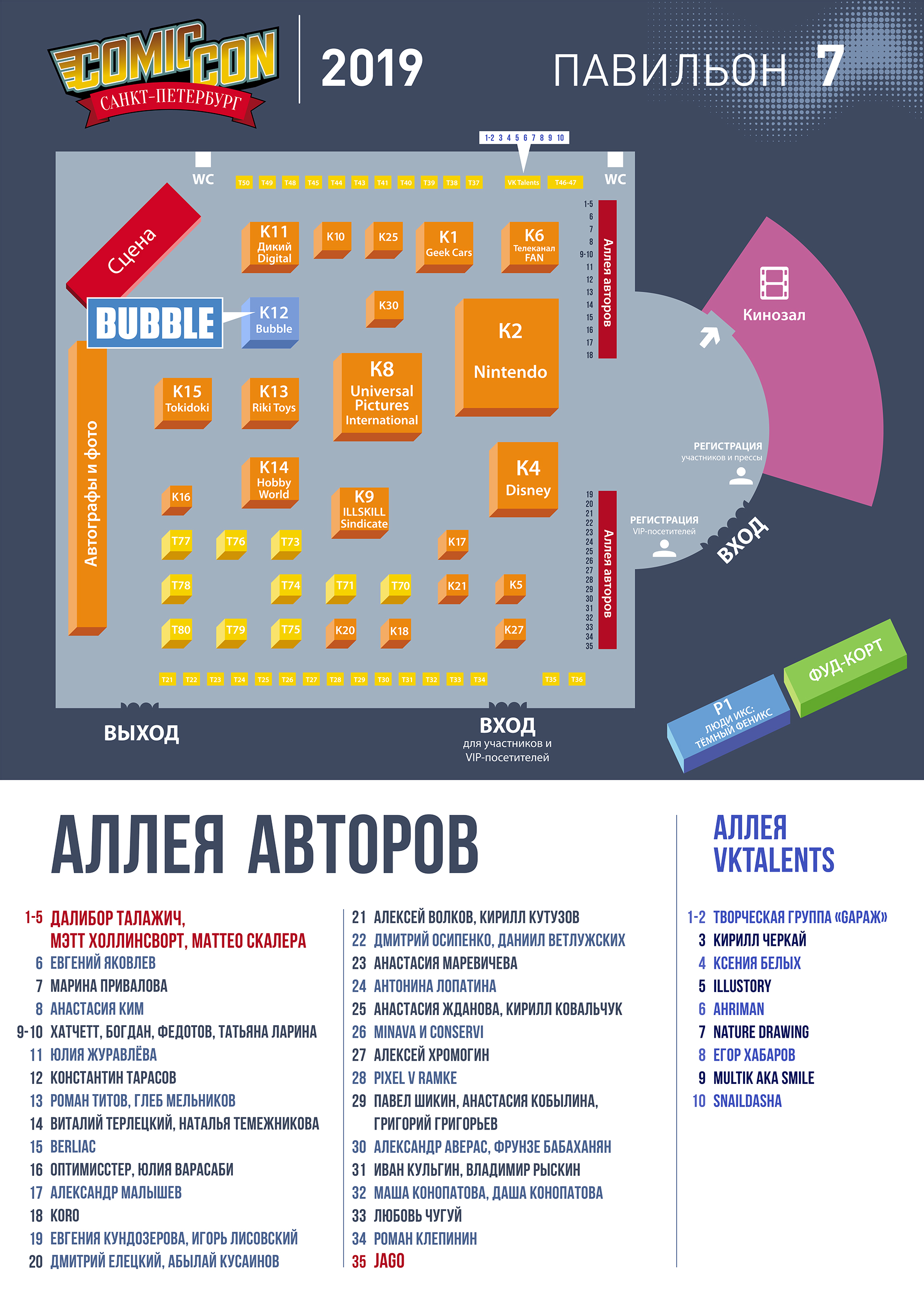 Гостями конвента станут: Иван Реон («Игра Престолов», «Отбросы»), Брайан Декарт и Амелия Роуз Блэр (Detroit: Become Human), Стефан Капичич («Дэдпул», «Дэдпул 2»). На Аллее Авторов создатели комиксов: Далибор Талажич, Мэтт Холлинсворт, Джон JaGo Гуэрра, Маттео Скалера, Берлиак и десятки российских художников-комиксистов. Также гостями станут актеры озвучания: Кураж-Бамбей, Кубик В Кубе, Ancord, Петр Гланц.