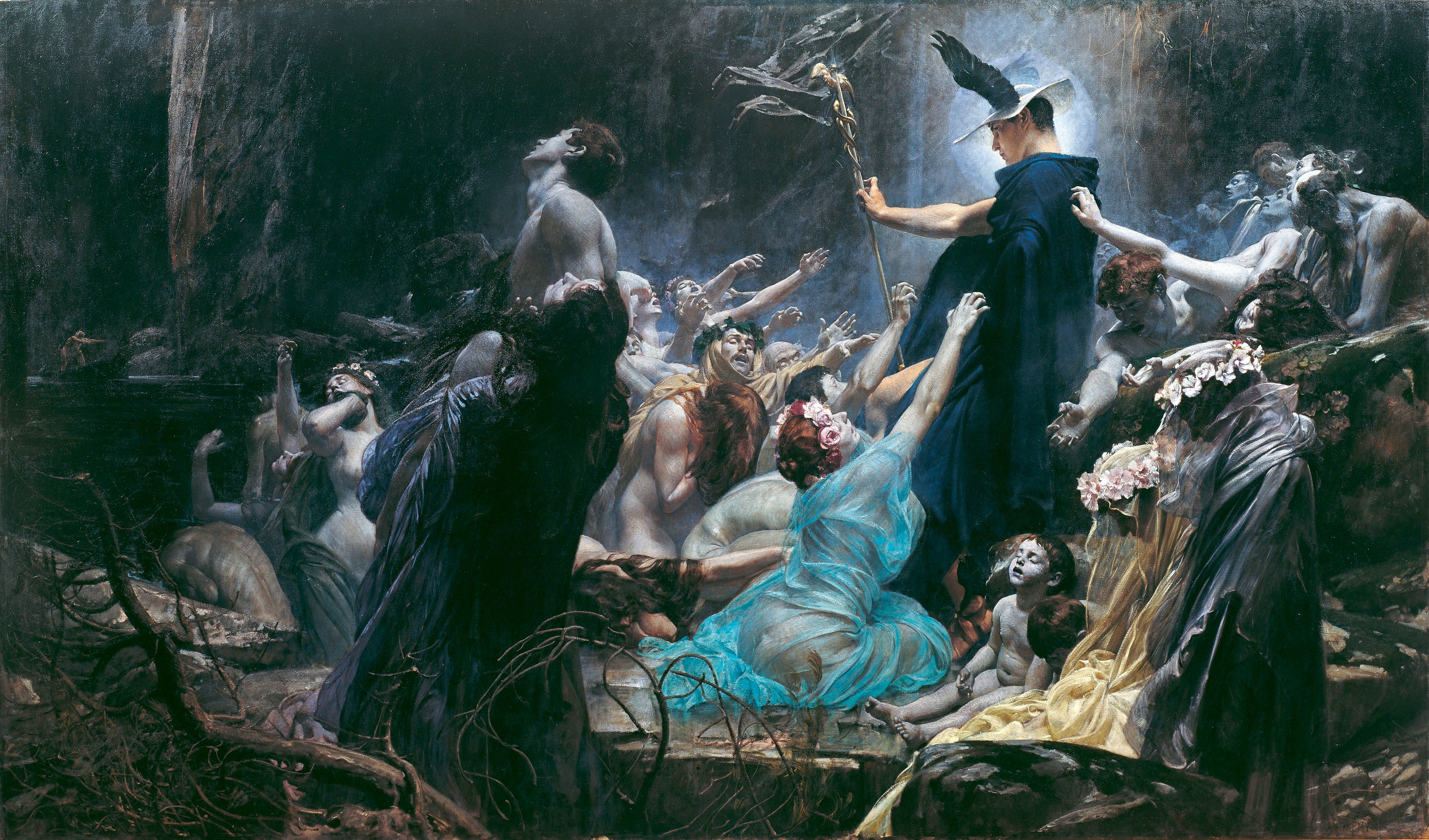 Гермес — психопомп и психогог: он помогает душам мёртвых проходить в посмертное существование, но равноценно и сопровождать их через подземный мир. Он есть также Гермес Онейропомпус — проводник сквозь сны.