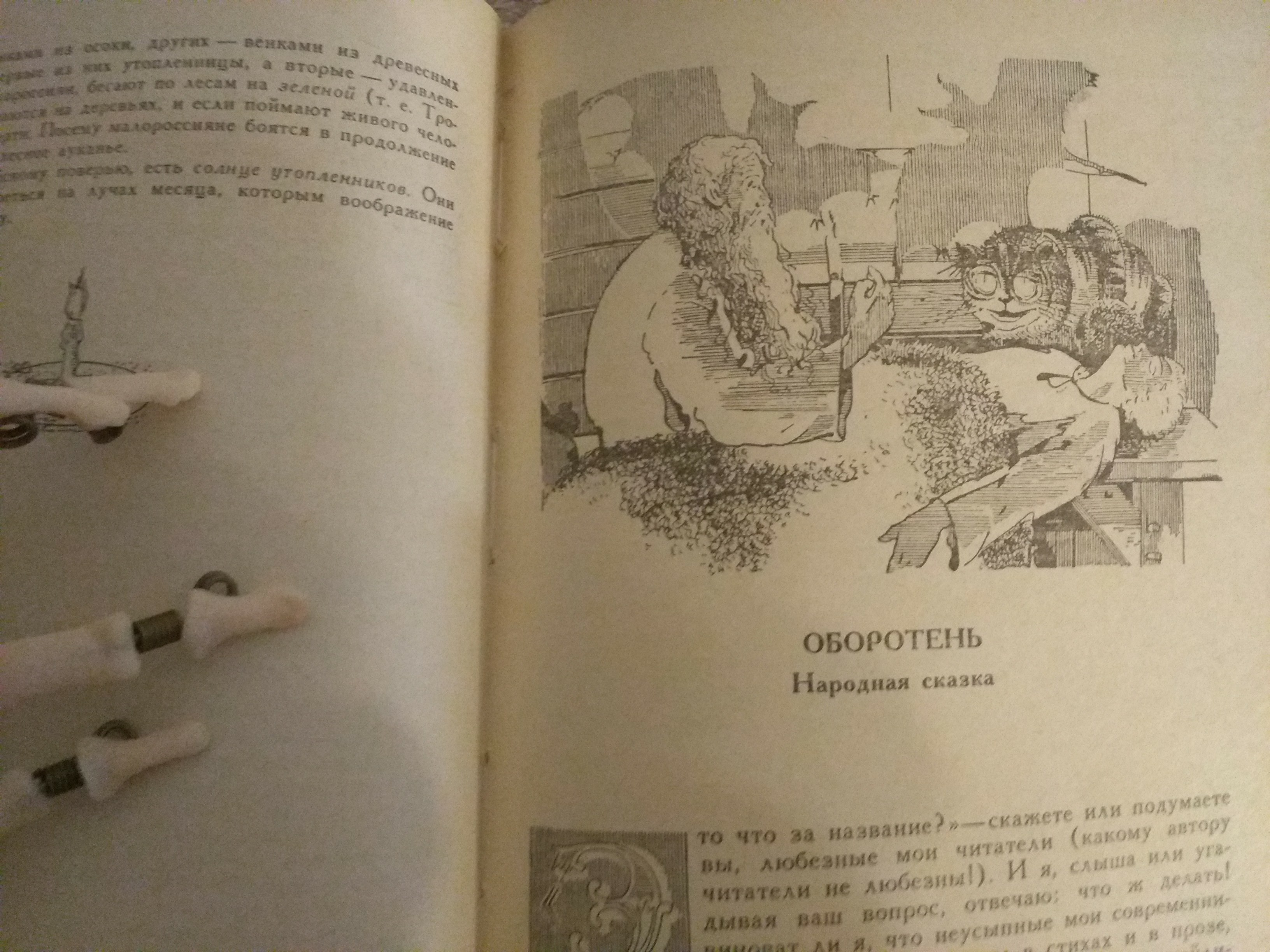 цитатаКорсары, Пираты, Гяуры, Ренегаты и даже Вампиры попеременно, одни за другими, делали набеги на читающее поколение или при лунном свете закрадывались в будуары чувствительных красавиц. Воображение моё так наполнено всеми этими живыми и мёртвыми страшилищами, что я, кажется, и теперь слышу за плечами щелканье зубов Вампира или вижу, как «от могильного белка адского глаза Ренегатова отделяется кровавый зрачок». Напуганный сими ужасами, я и сам, хотя в шутку, вздумал было попугать вас, милостивые государи! Но как мне в удел не даны ни мрачное воображение лорда Байрона, ни живая кисть Вальтера Скотта, ни даже скрипучее перо г. д'Арленкура и ему подобных, и сама моя муза так своевольна, что часто смеётся сквозь слёзы и дрожа от страха; то я, повинуясь свойственной полу её причудливости, пущу слепо мое воображение, куда она его поведет. Скажу только в оправдание моего заглавия, что я хотел вас подарить чем-то новым, небывалым; а русские оборотни, сколько помню, до сих пор еще не пугали добрых людей в книжном быту.