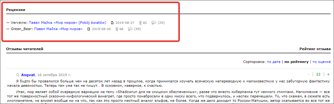 Во-первых, рецензии на произведения, публикуемые в авторских колонках и рубриках, теперь могут быть привязаны к самому произведению. На его странице будут видны ссылки на закреплённые рецензии. Привязкой статей к произведениям занимаются администраторы сайта. От вас же ждём больше рецензий в АК и рубриках.