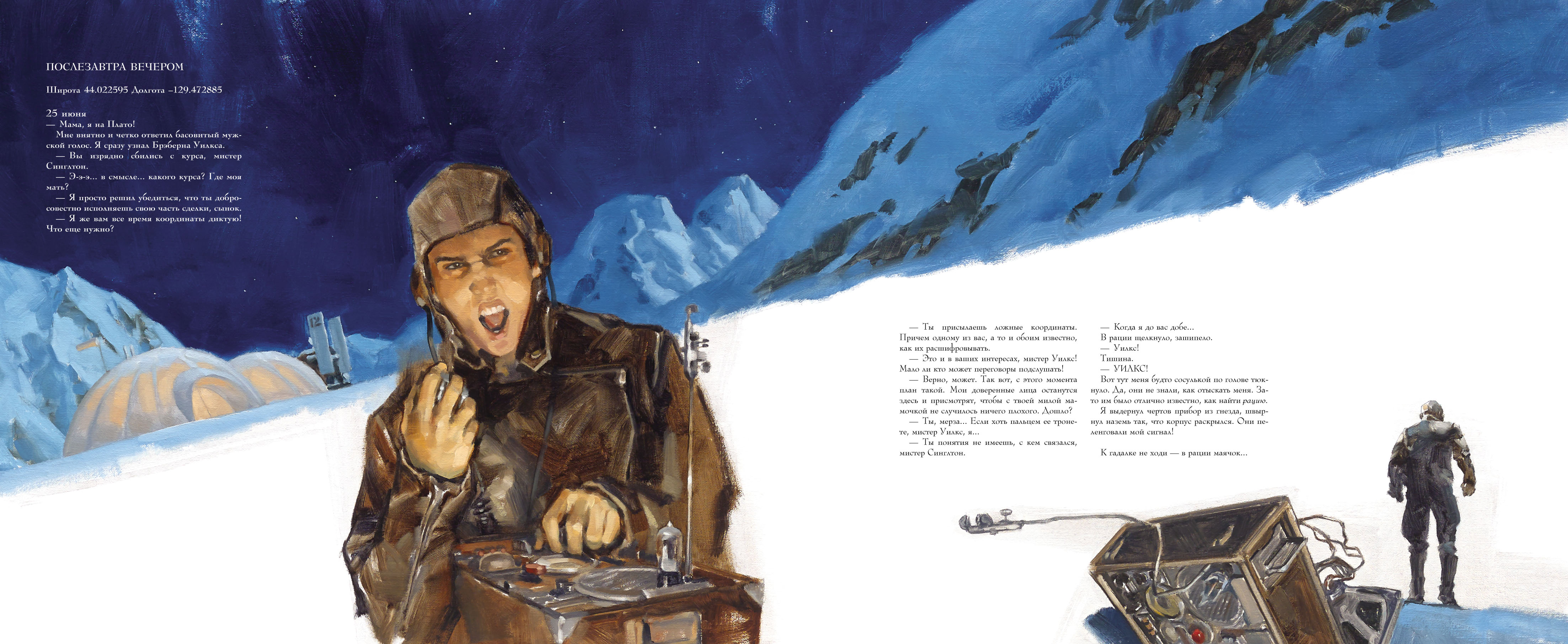 Прежде, чем показать во всей красе развороты книги, ещё одно важное дополнение: возрастной ценз этого альбома — 12+. Это означает, что «В ледяном плену» можно и нужно дарить детям, чтобы они мечтали не о собственном блоге-миллионнике, а о миллионах квадратных километров неизведанных территорий, на которых можно увидеть самые невероятные вещи и где всё зависит только от тебя — быть тебе во свете славы или кануть в тьме забвения.