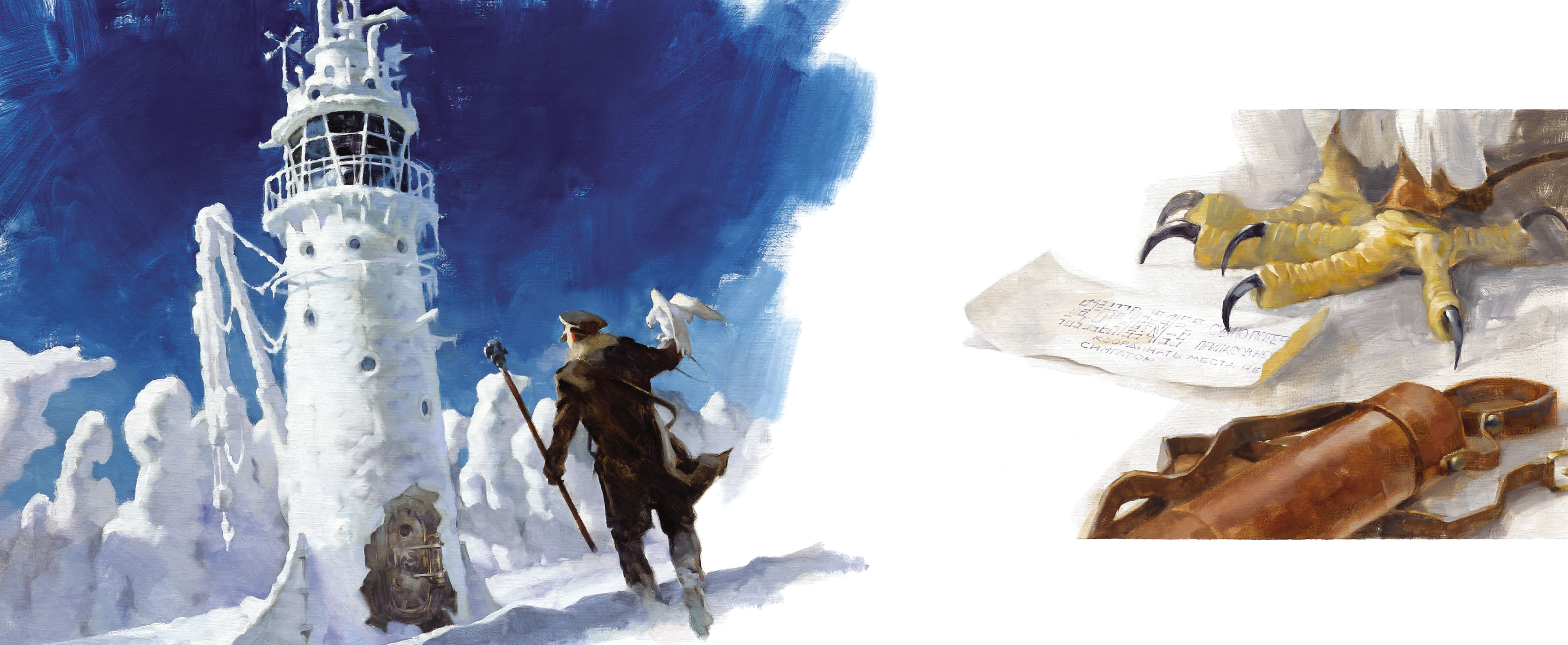 В типографию на этой неделе отправилась весьма необычная книга — альбом потрясающих иллюстраций с явным преобладанием в стилистике дизельпанка и романтики северных рассказов Джека Лондона, только помимо белых медведей ещё и гигантские носороги встречаются. «В ледяном плену» Грегори Манчесса — это 124 иллюстрации на 240 страниц книжного объёма, это адреналиновый заряд приключений и эндорфиновая встряска, потому как книга покоряет красотой изображённных на иллюстрациях пейзажей.