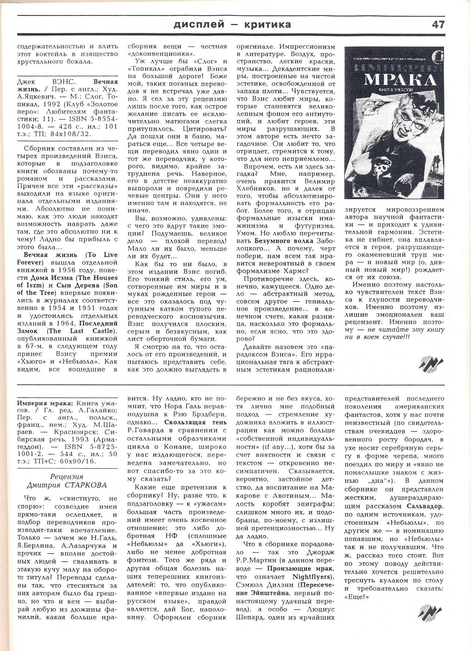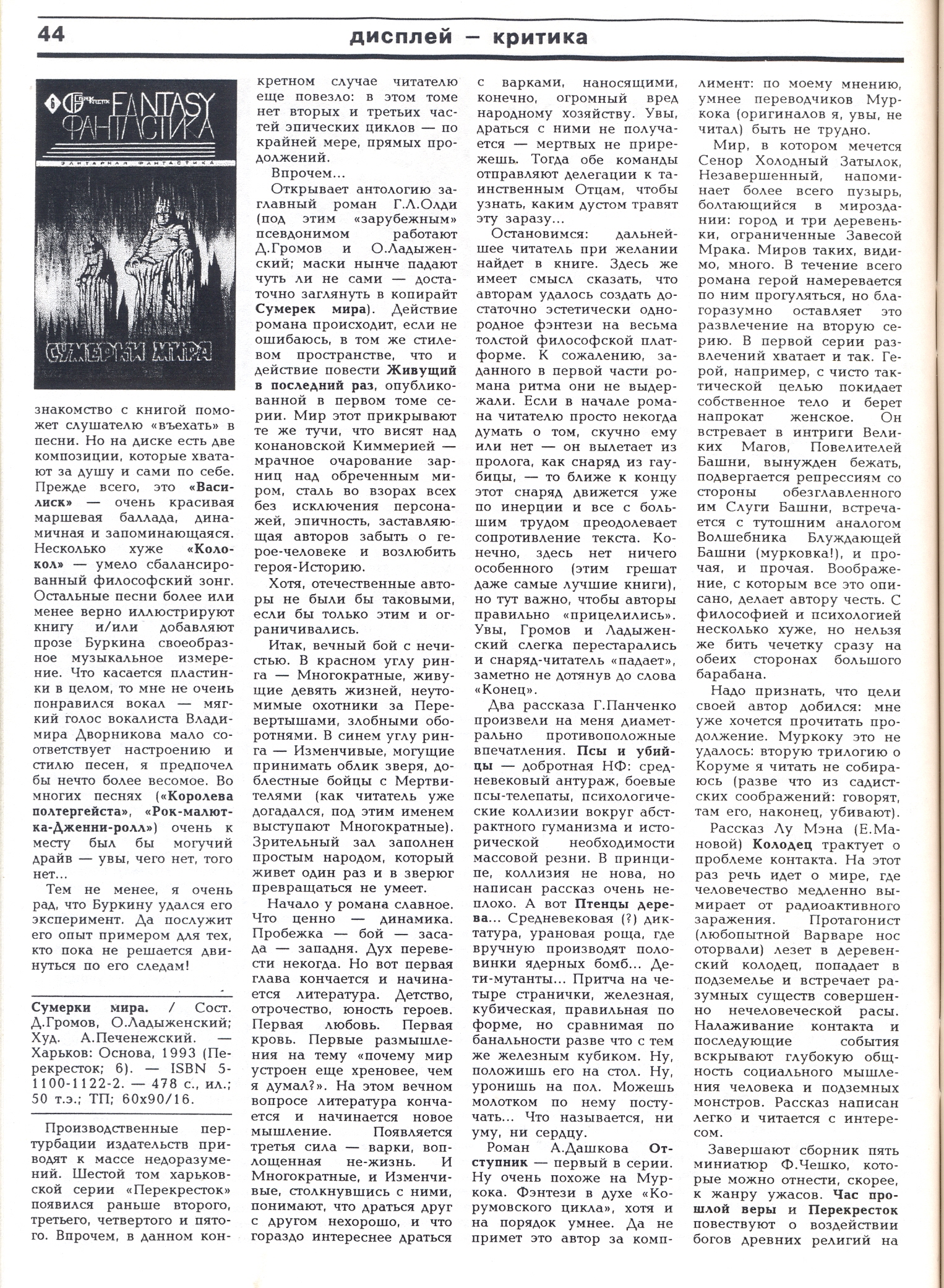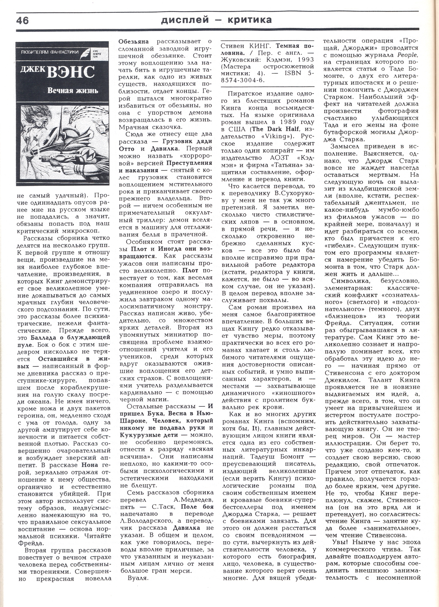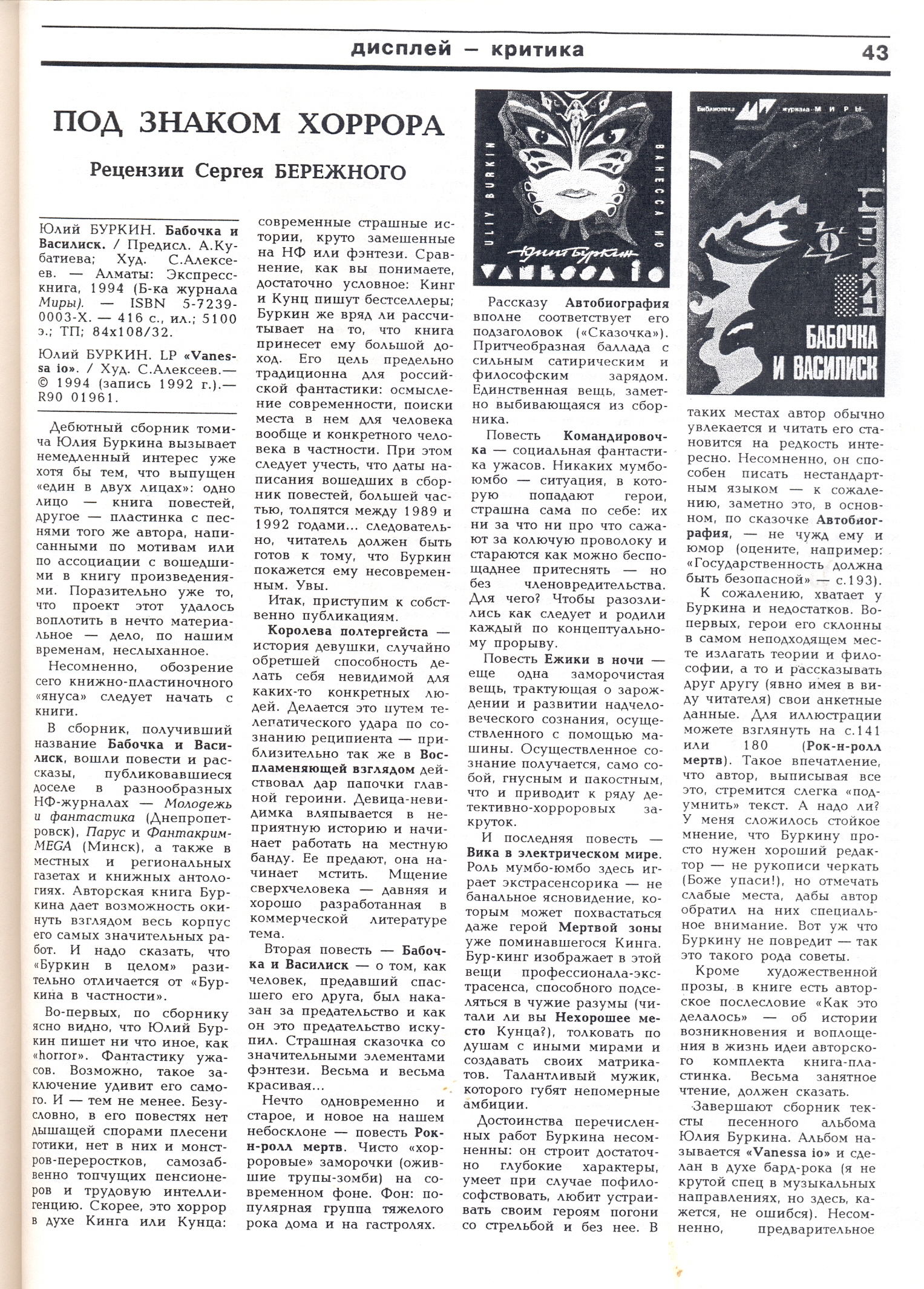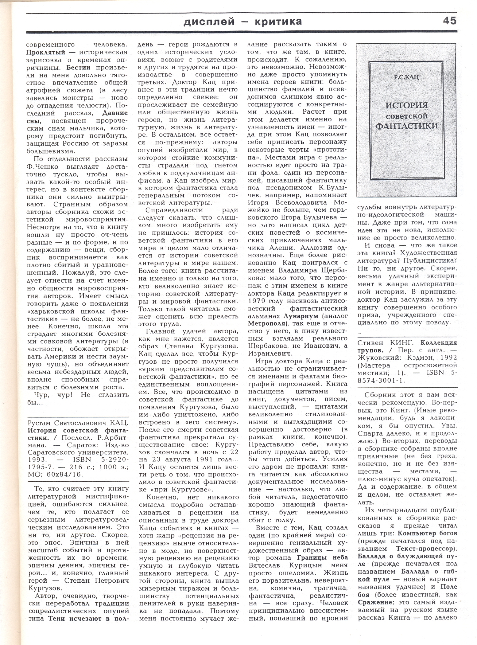 И в «Оверсане», и в «Интеркоме» «дисплей-критику» писал, как правило, Бережной... ну, иногда еще и я — под псевдонимом, естественно, а еще — Борис Миловидов, Андрей Николаев и Александр Етоев. А в этом 5-м номере в эту славную команду влился еще и Дима Старков, который тогда примкнул к нашей команде, в основном, как переводчик (переводы Брюса Стерлинга и Роберта Хайнлайна).