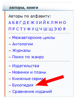Раздел называется «Букопедия», ссылка на него находится на главной странице сайта, под меню «авторы, книги»: