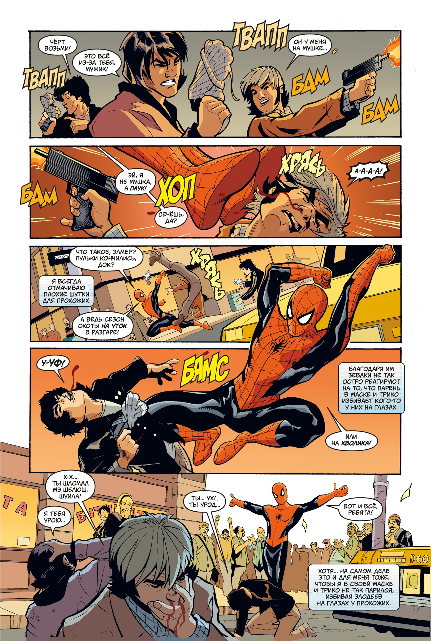 Несравненный Кевин Смит (фильмы «Клерки», «Догма», «Джей и Молчаливый Боб наносят ответный удар», комикс «Сорвиголова. Дьявол-хранитель») наносит очередной удар по стандартам супергеройских сюжетов, а знаменитый дуэт художников Терри и Рэйчел Додсонов («Звёздные войны. Принцесса Лея», «Рыцари Marvel. Человек-паук») с блеском изображает как сцены поединков, так и разгорячённые споры Питера и Фелиции.