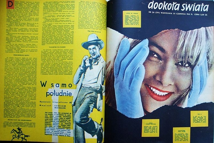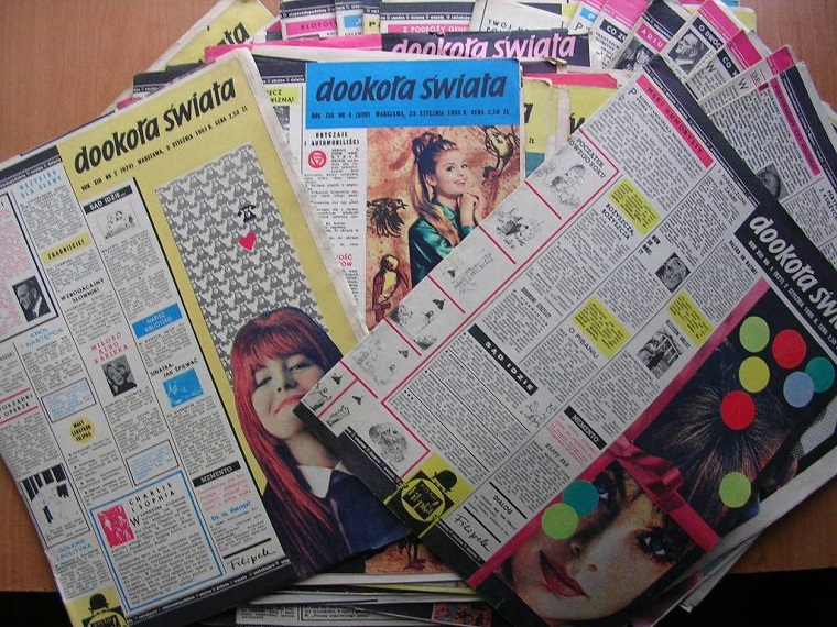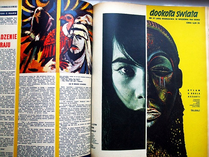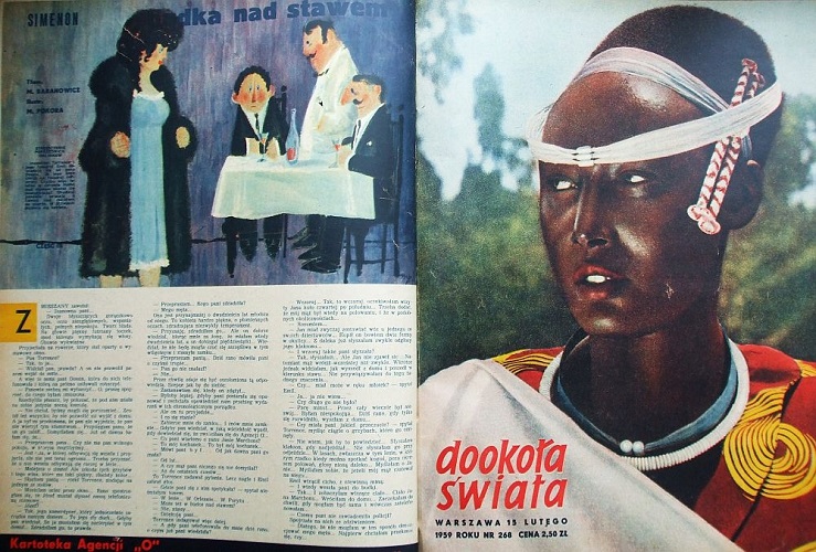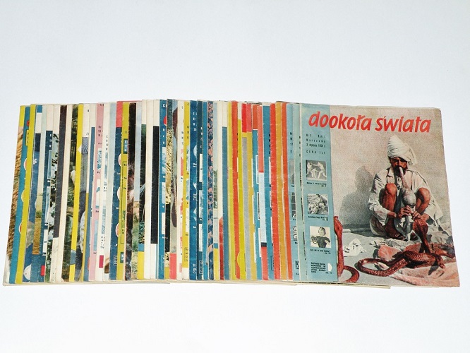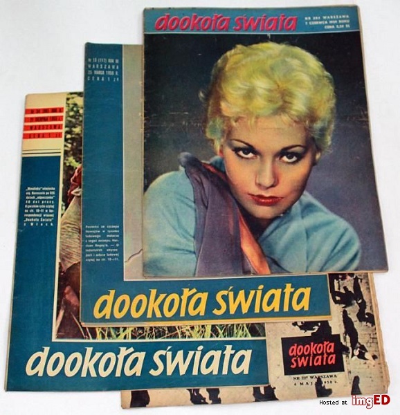 И немного о журнале “Dookoła świata/Вокруг света”. Это аналог (отчасти по крайней мере) нашего одноименного журнала, но еженедельник, а не ежемесячник, поэтому значительно более тонкий. Своего рода «окно в широкий мир» для молодого читателя. Очень популярный – тираж доходил до 350 тысяч экземпляров. Публикации касались Польши, Европы, обеих Америк, Азии – впрочем, действительно всего на свете. Журнал имел корреспондентов во всем мире, поэтому публиковались интереснейшие репортажи из Алжира, Венгрии, Гонконга, Бангкока, Лондона, Румынии, Аргентины и Боливии, даже с Чукотки… Интервью с интересными людьми, короткие приключенческие и научно-фантастические рассказы, отрывки из книг, которые (книги), зачастую позже появлялись в издательстве “Iskry” (а иногда и не появлялись). Прекрасный журнал. Издавался в 1954 – 1976 годах. Издание журнала возобновлено в 2011 году, но это, понятно, уже совсем другой журнал.