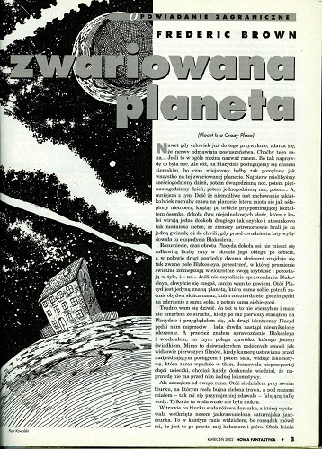 1. Рассказ американского писателя Фредерика Брауна/Frederic Brown, который называется в оригинале “Placet is A Crazy Place” (1946, ”Astounding SF”, 5; 1951, ант. “Travelers of Space”; 1954, авт. сб. “Angels and Starships”), перевел на польский язык под названием “Zwariowana planeta/Сумасшедшая планета” КШИШТОФ ЗАЖЕЦКИЙ/Krzysztof Zarzecki (стр. 3 – 10). Иллюстрации ПЕТРА КОВАЛЬСКОГО/Piotr Kowalski.