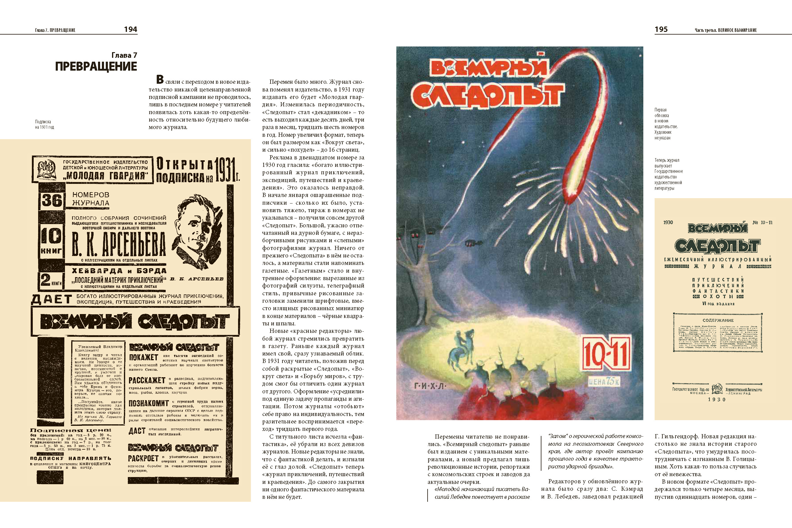В новой книге, продолжающей условный цикл «Как издавали фантастику в СССР», рассмотрена короткая, но яркая история журнала «Всемирный следопыт». Журнал выходил недолго — с 1925 по 1931 год, но оказал сильнейшее влияние на развитие фантастики в СССР. Всего лишь за несколько лет он стал ведущим жанровым журналом в стране, заложив фундамент будущих успехов молодой советской фантастики. В книге прослежен путь «Следопыта» от первых номеров до закрытия, описаны предпосылки жанрового бума двадцатых годов, затронуты аспекты влияния «Следопыта» на развитие фантастики в предвоенные годы.