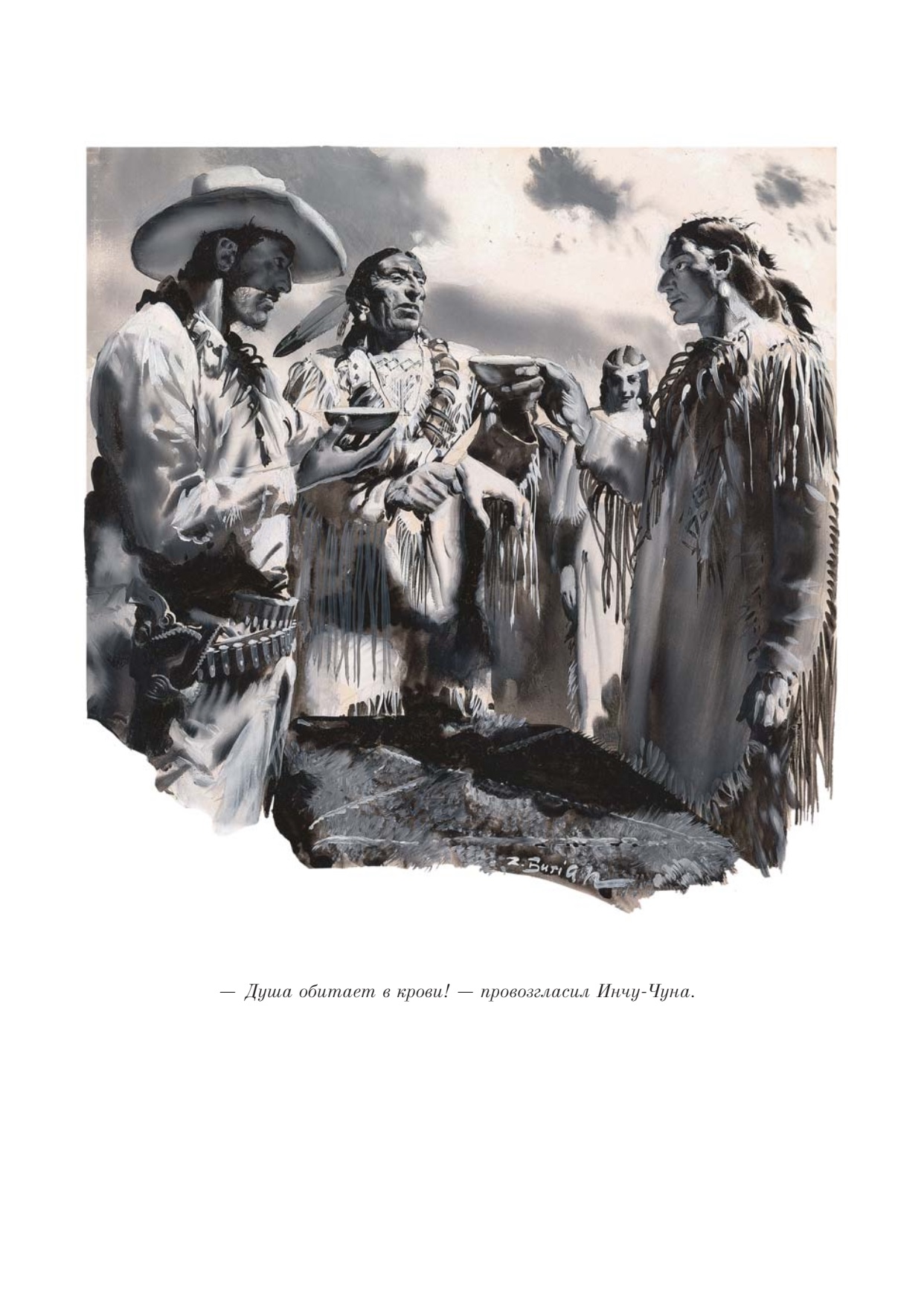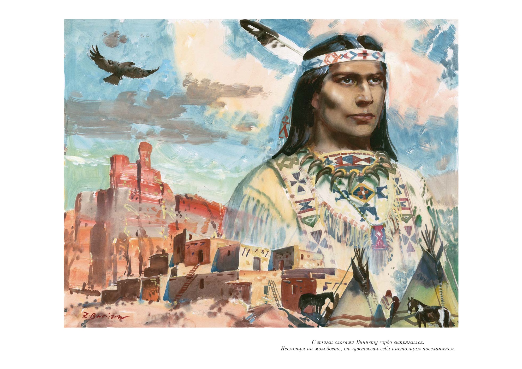 Вот и добрались до комплекта иллюстраций Буриана, включённых в том «Виннету. Сын вождя» в серии Больше чем книга». Всего в книге 62 иллюстрации+цветная иллюстрация на обложке как часть оформления, созданного Сергеем Шикиным.