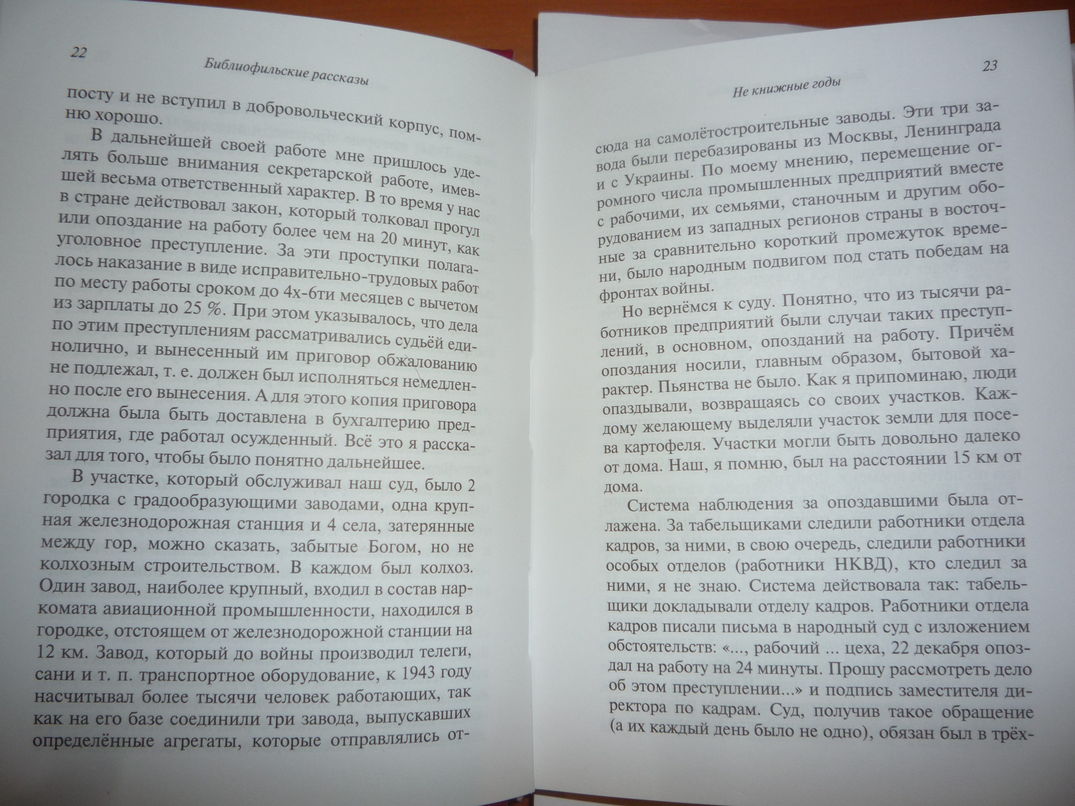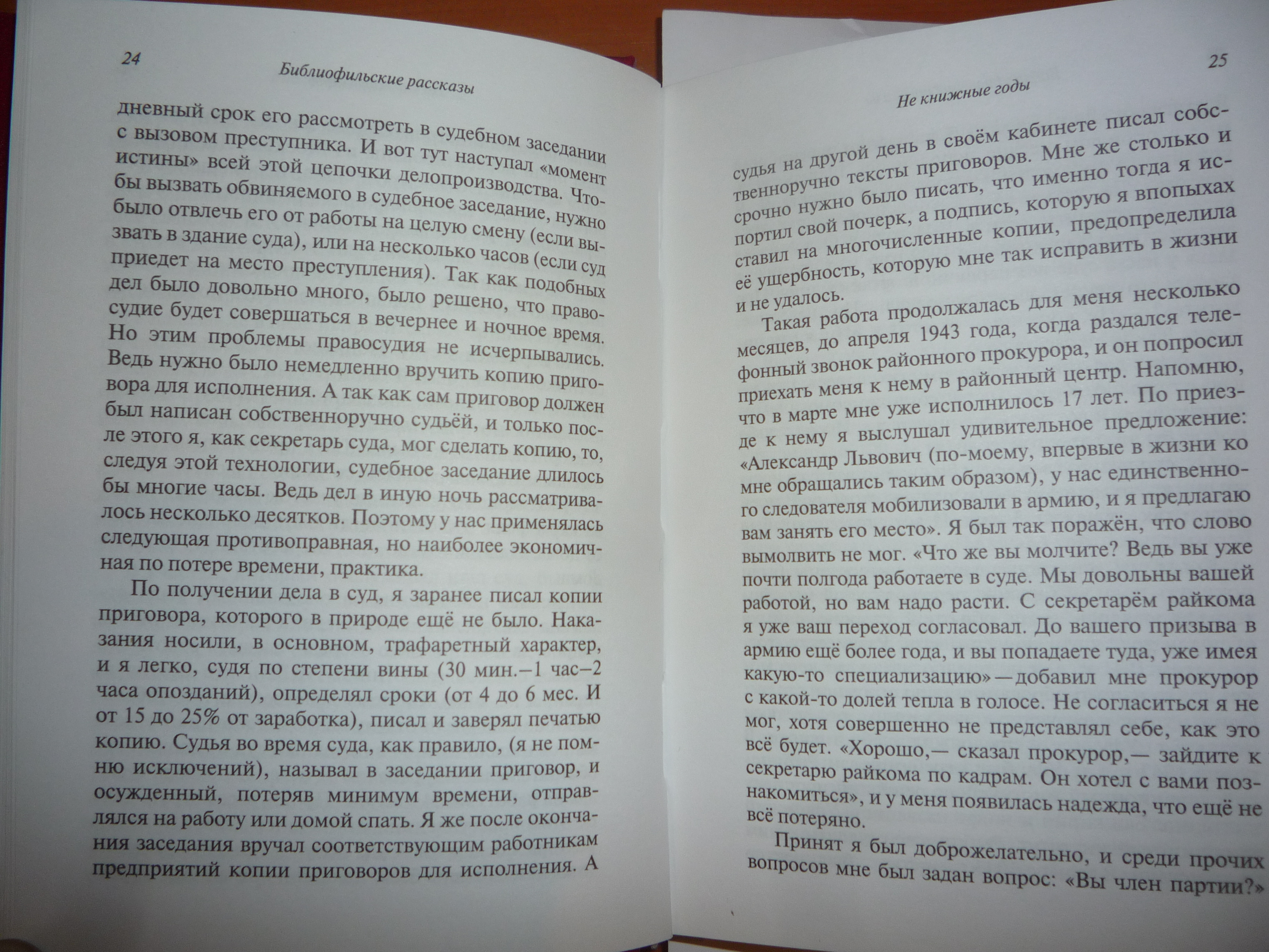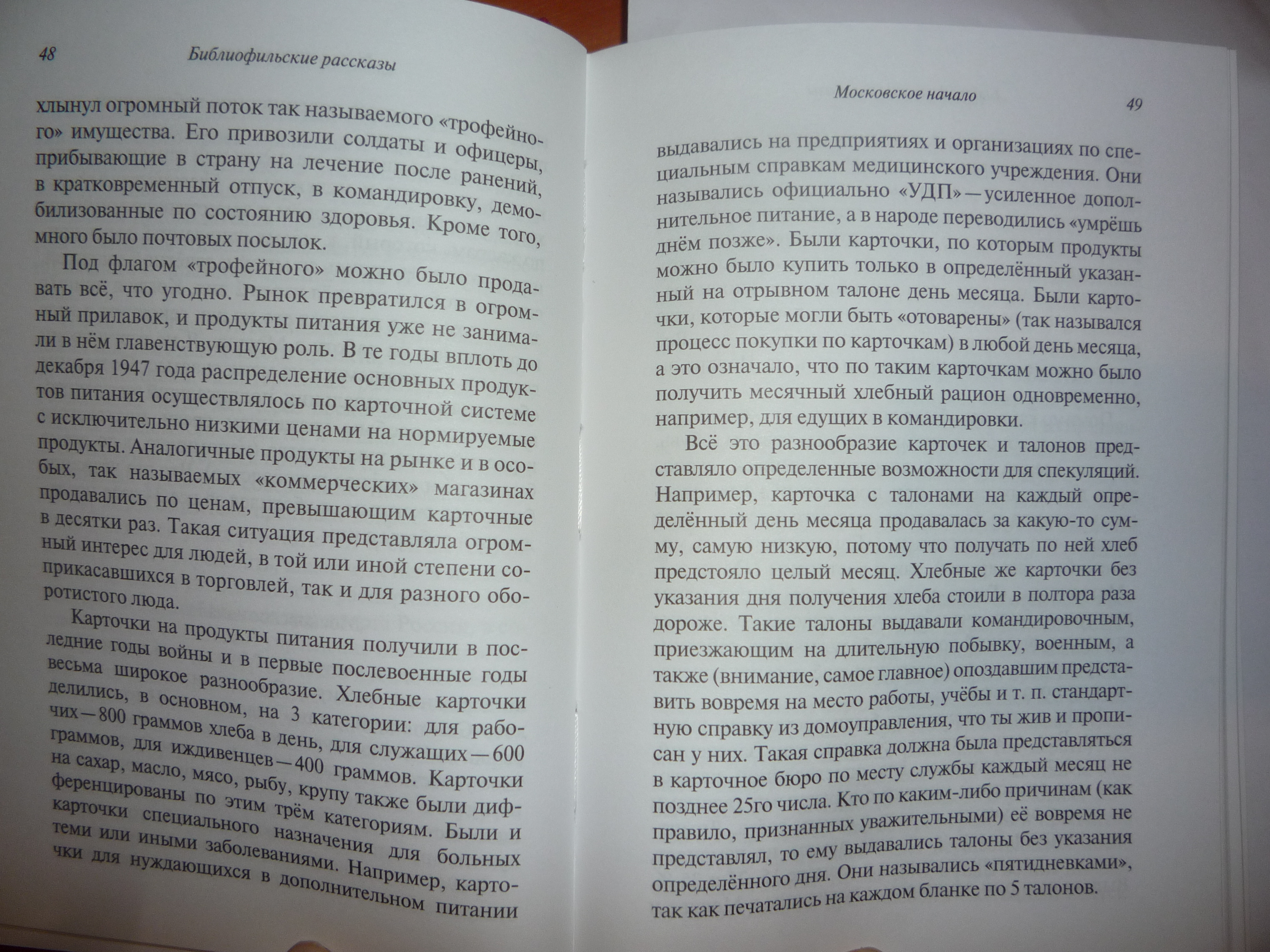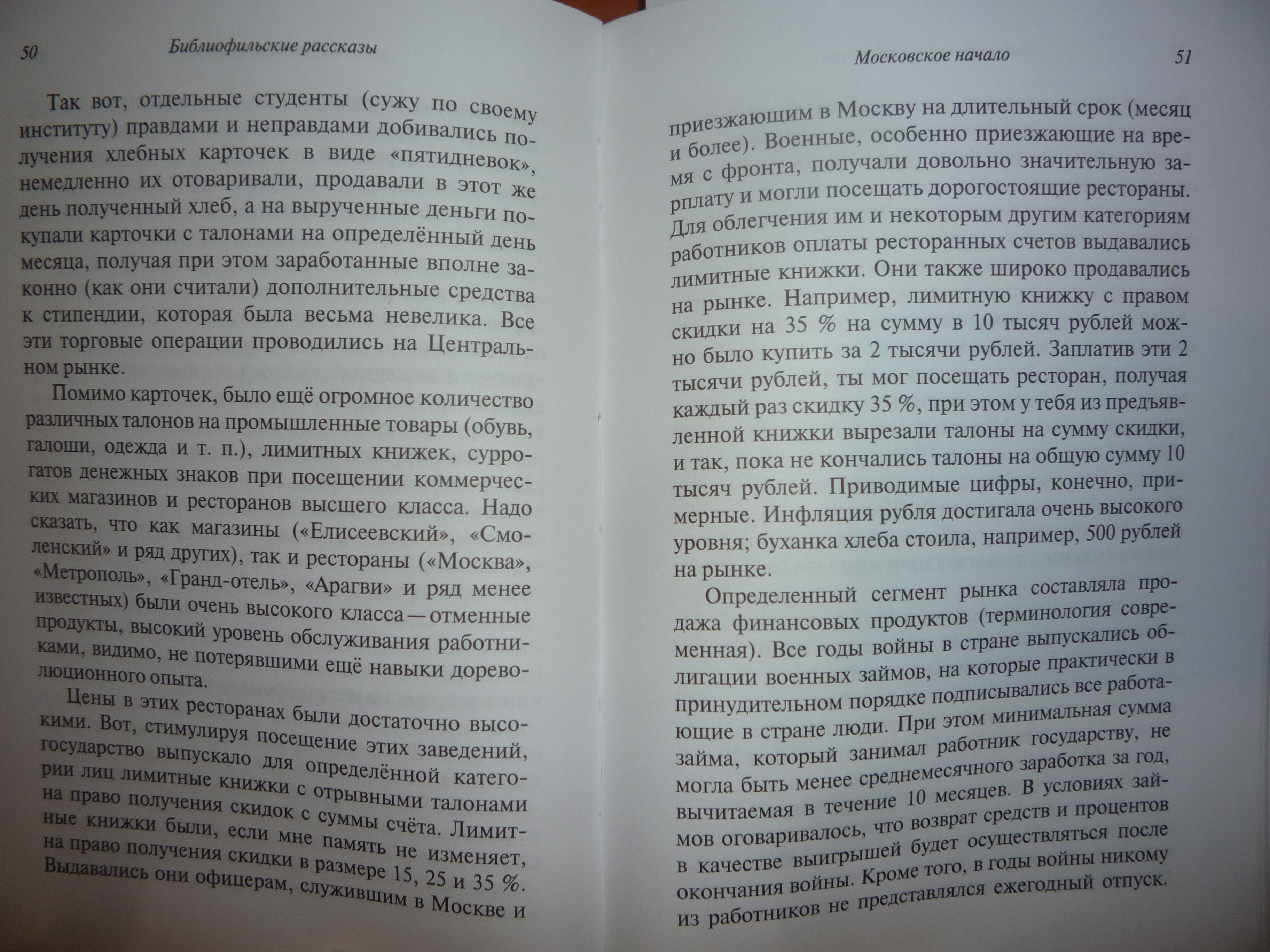 Интересными оказались бытовые, житейские моменты, с книжным собирательством почти несвязанные: вторая глава в книге — о жизни подростка в эвакуации, во время великой отечественной войны — Харьков, Тула, Саратов, поселок Миньяр Челябинской области, Уфа — и поступление в институт в Москве, в 1944 году. Потом эпизод про работу в суде и рассказ о бездумной штамповке дел. Еще о чёрном рынке в Москве. Фотографии этих страниц поместил под кат.
