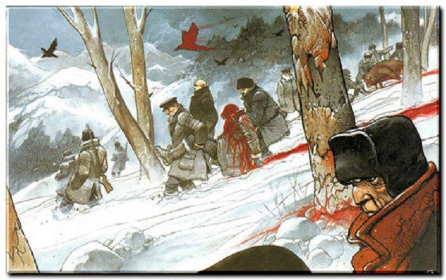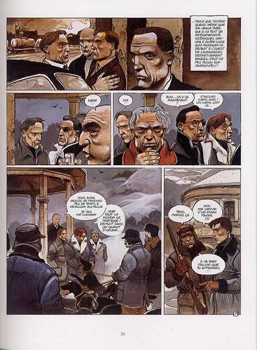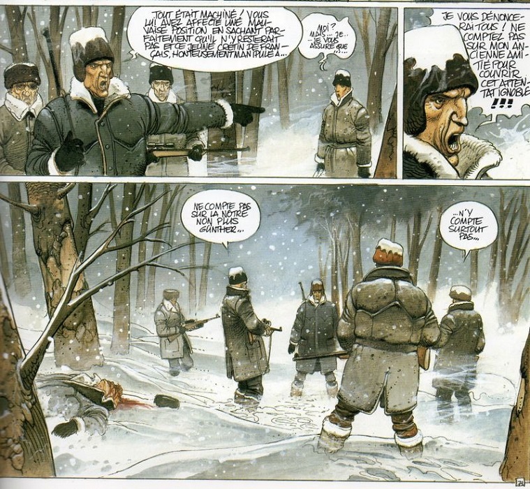 Сонная зимняя аура провоцирует партийных боссов на воспоминания о брутальном прошлом и раздумья над ненадежным будущим в шатающемся социализме. БИЛАЛЬ мастерски наполняет сценарий Кристена. На листах с густо наложенными красками кипит угрюмая экспрессия. На неподвижных и каменных лицах заметны следы жизненных невзгод и угрызений совести.