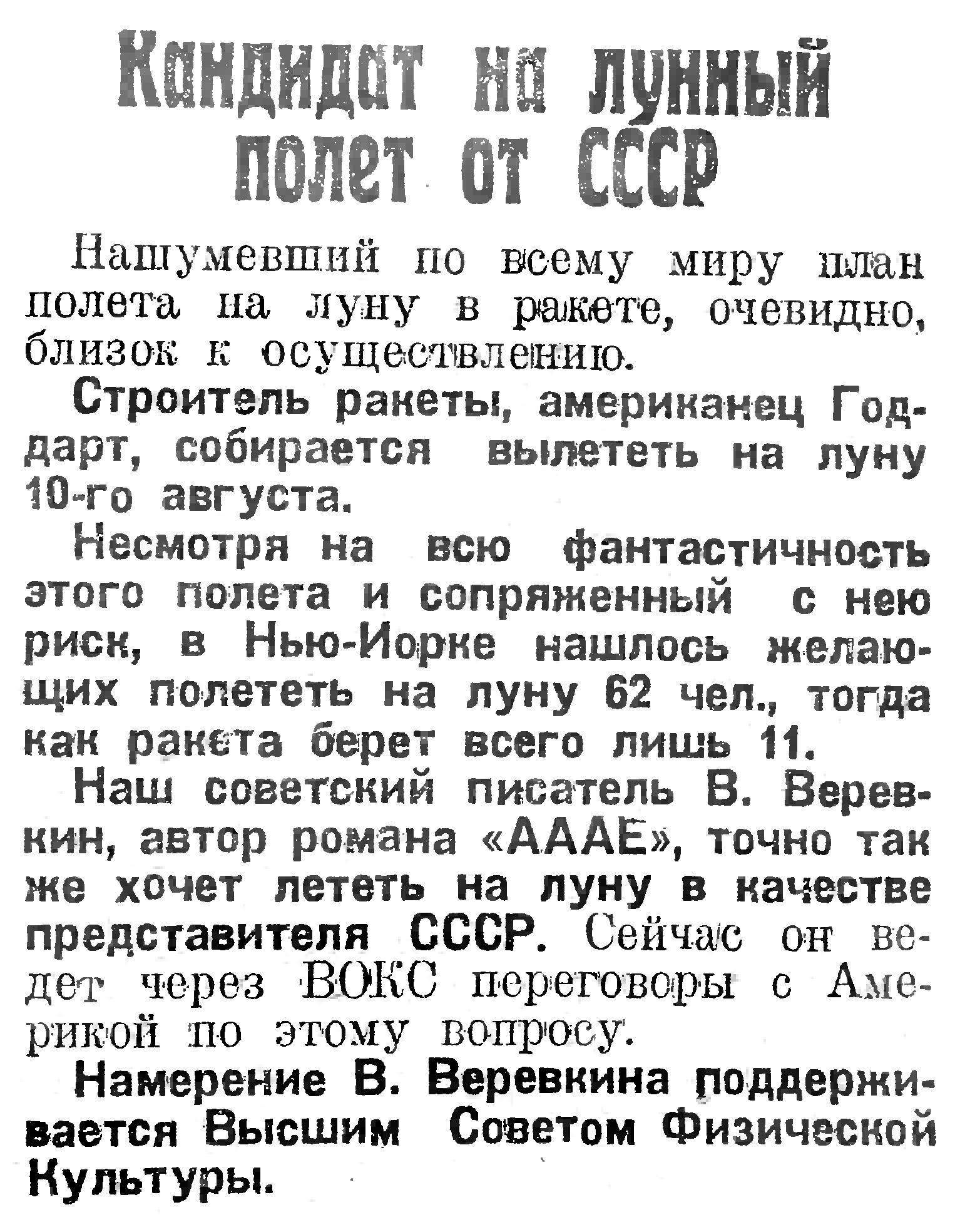 2. Начало двадцатых годов в истории нашей фантастики было царством Красного Пинкертона. Герои романов «зажигали» по всему миру, боролись со шпионами, раскрывали заговоры и срывали покровы с коварных замыслов врагов. Впрочем, авторы «краснопинкертоновских» романов тоже не отставали. Например, ЭТОТ автор вызвался добровольцем лететь на Луну в качестве представителя СССР. Готовили полет американцы, активные переговоры шли через Всесоюзное общество культурной связи с заграницей. Жаль, полет не состоялся. А то бы!