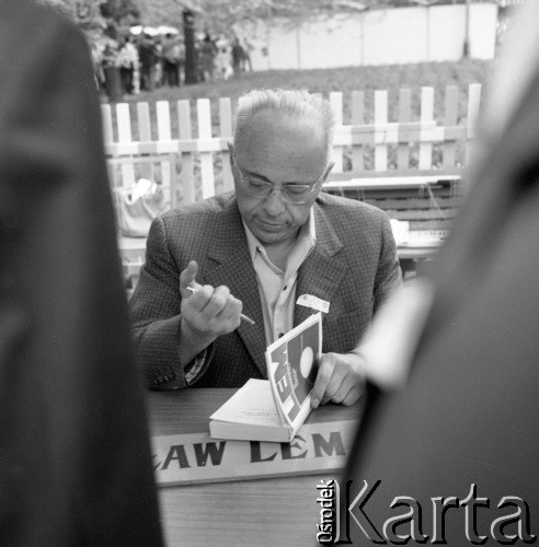 Станислав Лем на XXVI Варшавской книжной ярмарке на площади Парадов. Fot. Romuald Broniarek. |