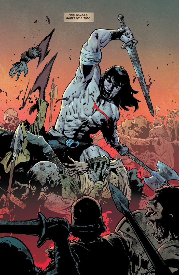цитатаПочему? Про одну из лучших серий уже сказали. А еще это Джейсон Аарон, один из лучших сценаристов. А еще там динамичный и стильный рисунок. А еще... Это Конан, ребята! И есть обложка со Шварцем, о чем вообще речь?!