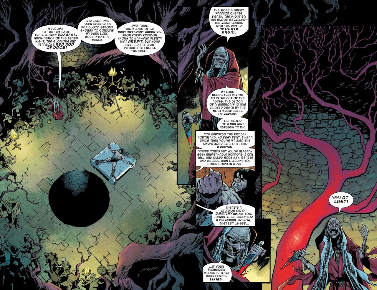 Жизнь и смерть Конана-варвара! Величайший из всех героев меча и колдовства возвращается в Marvel, но как долго он продержится? Путешествия Конана привели его в дальние края неизвестности, от родной Киммерии до королевства Аквилония и всех земель между ними — но как его боевая доблесть позволяет ему прокладывать себе путь в жизни, так же она привлекает и силы смерти! И немногие из них более смертоносны, чем Багровая Ведьма и ужасный колдун Тот-Амон! И пока чудовища из прошлого поднимают свои грозные головы, варвар сражается в последней битве и встречает свою окончательную судьбу — но что лежит за завесой жизни? Может быть, это... Кром?! Дни легендарного варвара Роберта И. Говарда сочтены в новой саге, и судьба Конана изменилась навсегда!