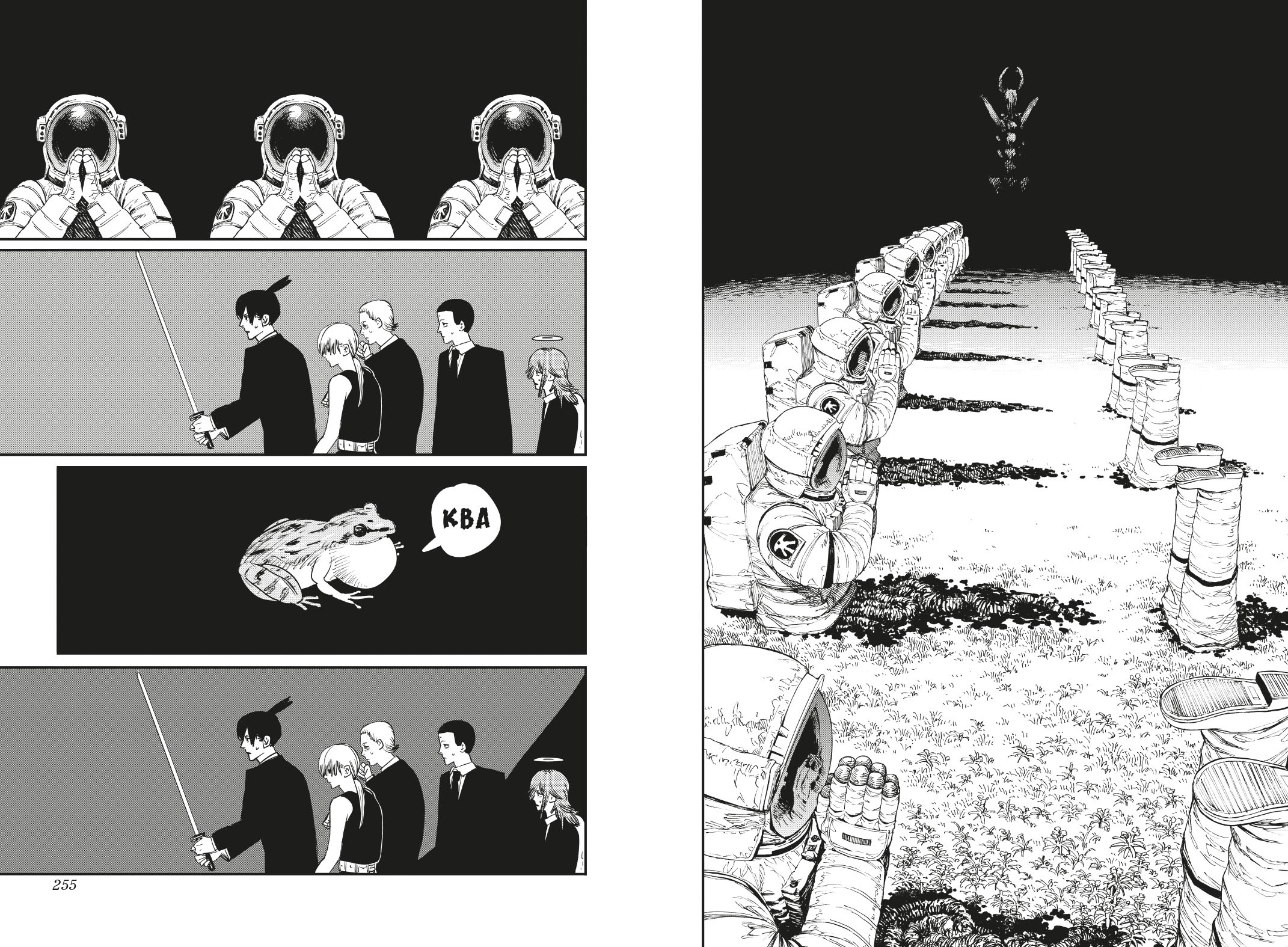В четвёртую книгу вошли тома 7 и 8 («Во сне» и «Настоящая жесть»), что соответствует главам с 53-й по 70-ю. Суперобложка в издании «Человек-бензопила» всё так же двусторонняя, так что на полку можно ставить той стороной, которая больше по душе.