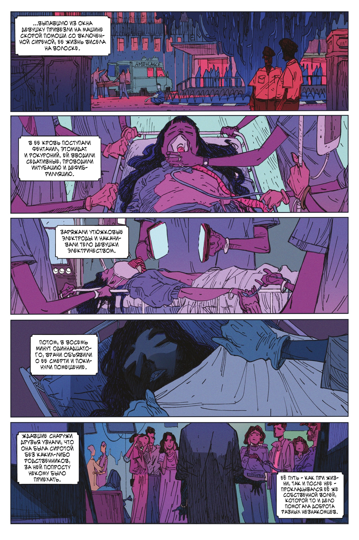 Великолепный комикс, который исследует тонкую грань между жизнью и смертью через призму магического реализма. Данная работа прочно обосновалась во всевозможных топах лучших комиксов 2021 года, причем зачастую на лидирующих позициях. Это замечательное произведение с отличным рисунком и мы всем настоятельно рекомендуем ознакомиться с ним.