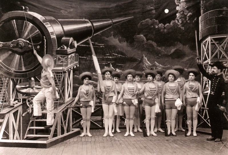 Так или иначе этот длящийся 14 минут фильм с Мельесом в роли французского профессора, стоящего во главе экспедиции, считается первым произведением научной фантастики в истории кино. Видел ли его Жюль Верн – не известно, но есть нечто бодрящее в том факте, что рождение киножанра связано с именем отца всего культурного направления.