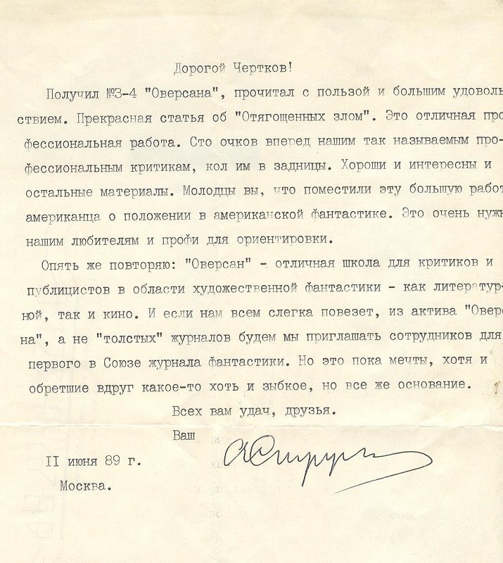 Примечание. Статья об «Отягощенных злом» из этого номера «Оверсана» — это знаменитое эссе Вадима Казакова «Время Учителей», которое каким-то странным образом повлияло на создание несколько лет спустя издательского проекта «Миры братьев Стругацких: Время учеников». Ну а «большая работа американца о положении в американской фантастике» — это небезызвестное «киберпанковское» эссе Майкла Суэнвика «Постмодернизм в фантастике: Руководство пользователя», которое в моём фэнзине (первая половина перевода статьи) было напечатано под названием «Инструкция к постмодернистам».