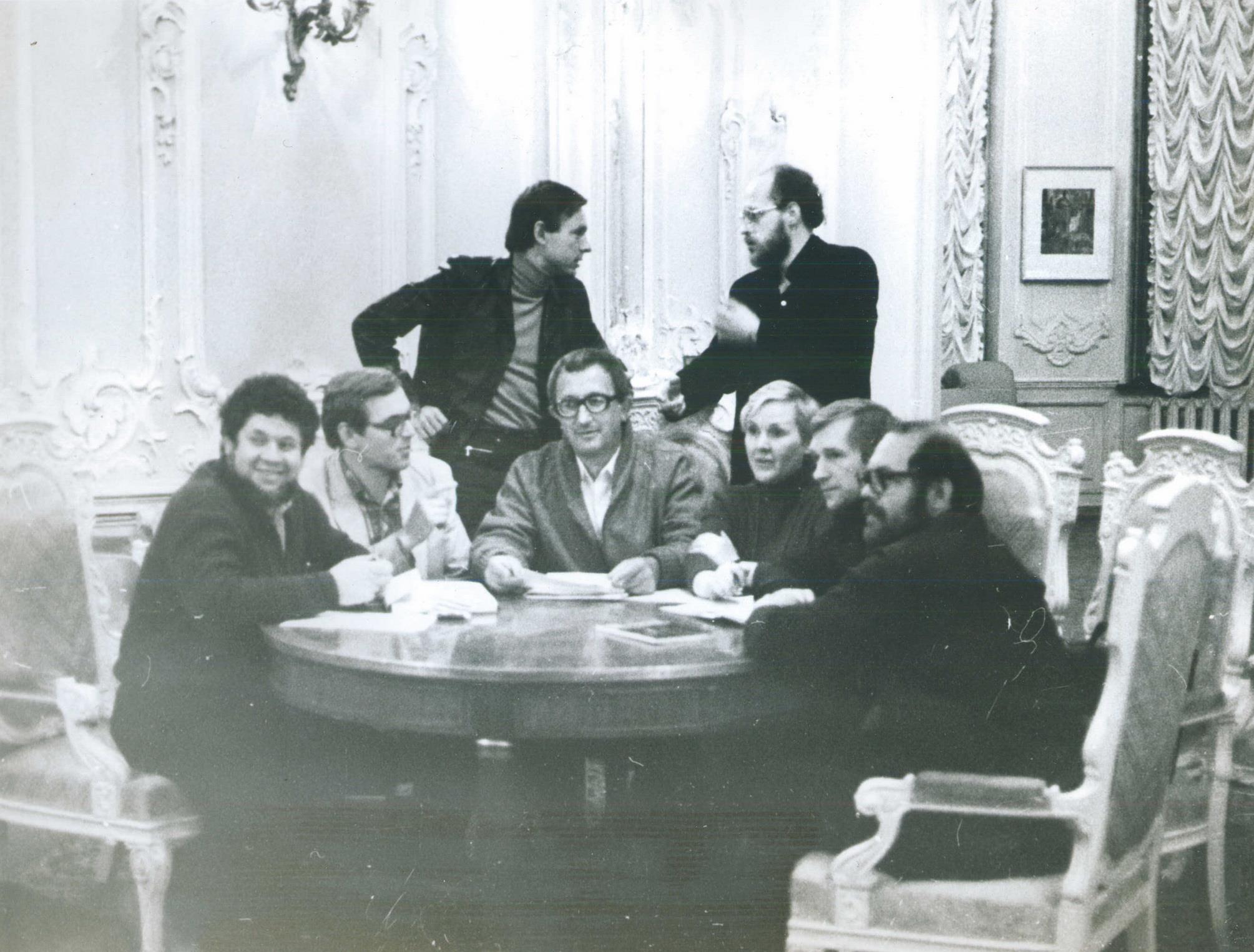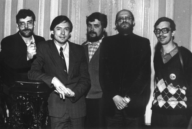 Ленинград, то ли 1990 год (осень), то ли 1991 год (весна), старый Дом писателей на улице Шпалерной (тогда еще улица Воинова) примерно за 2 года до своего знаменитого пожара, несколько членов и участников Семинара Бориса Стругацкого сразу после очередного заседания:
