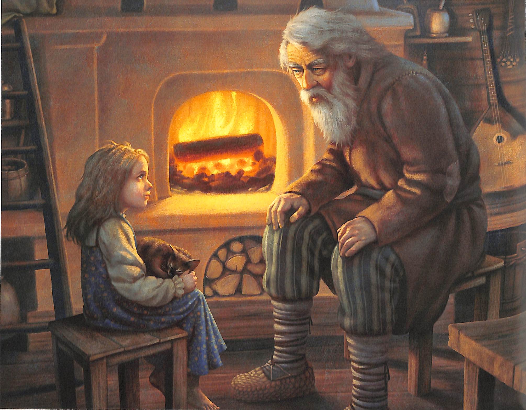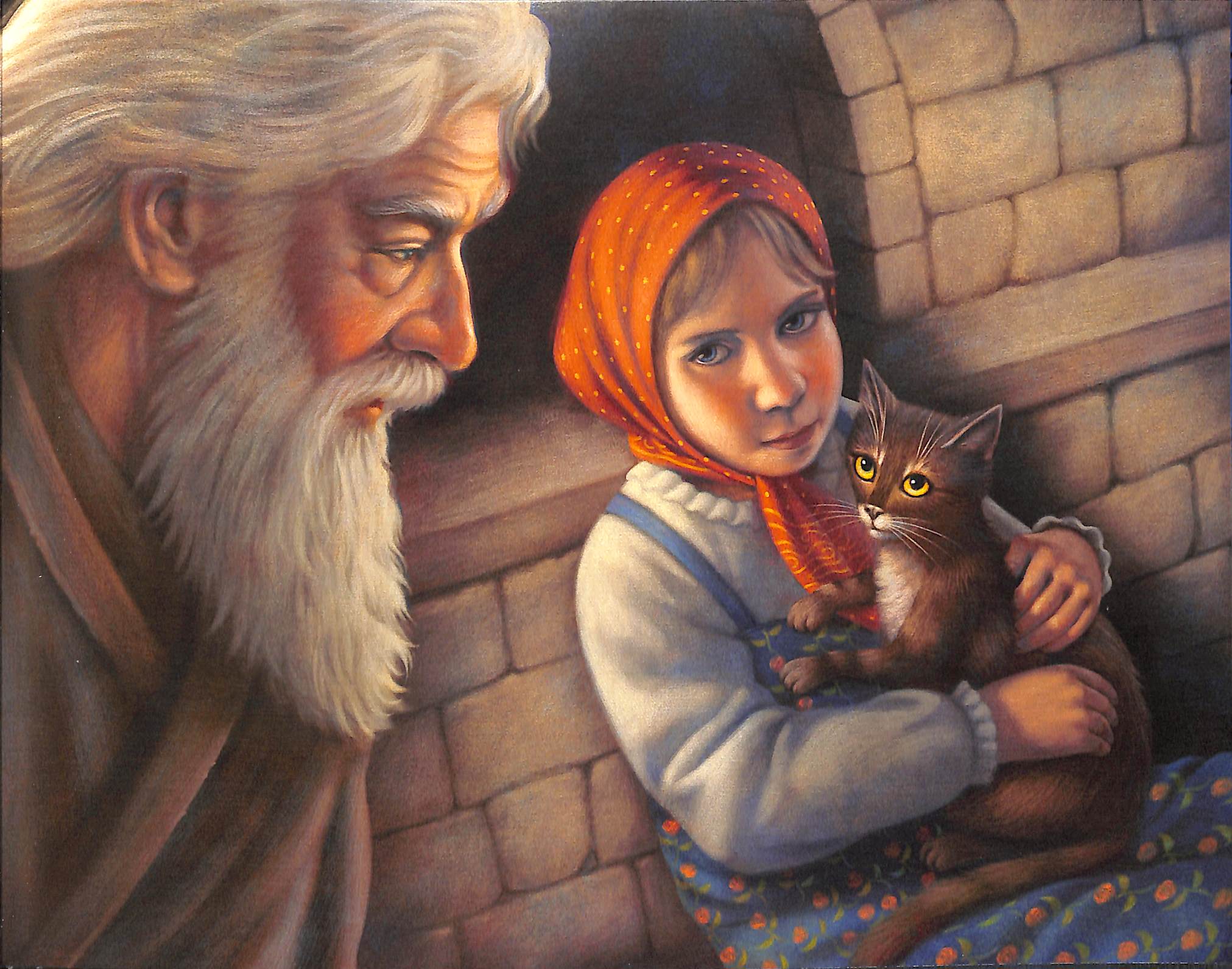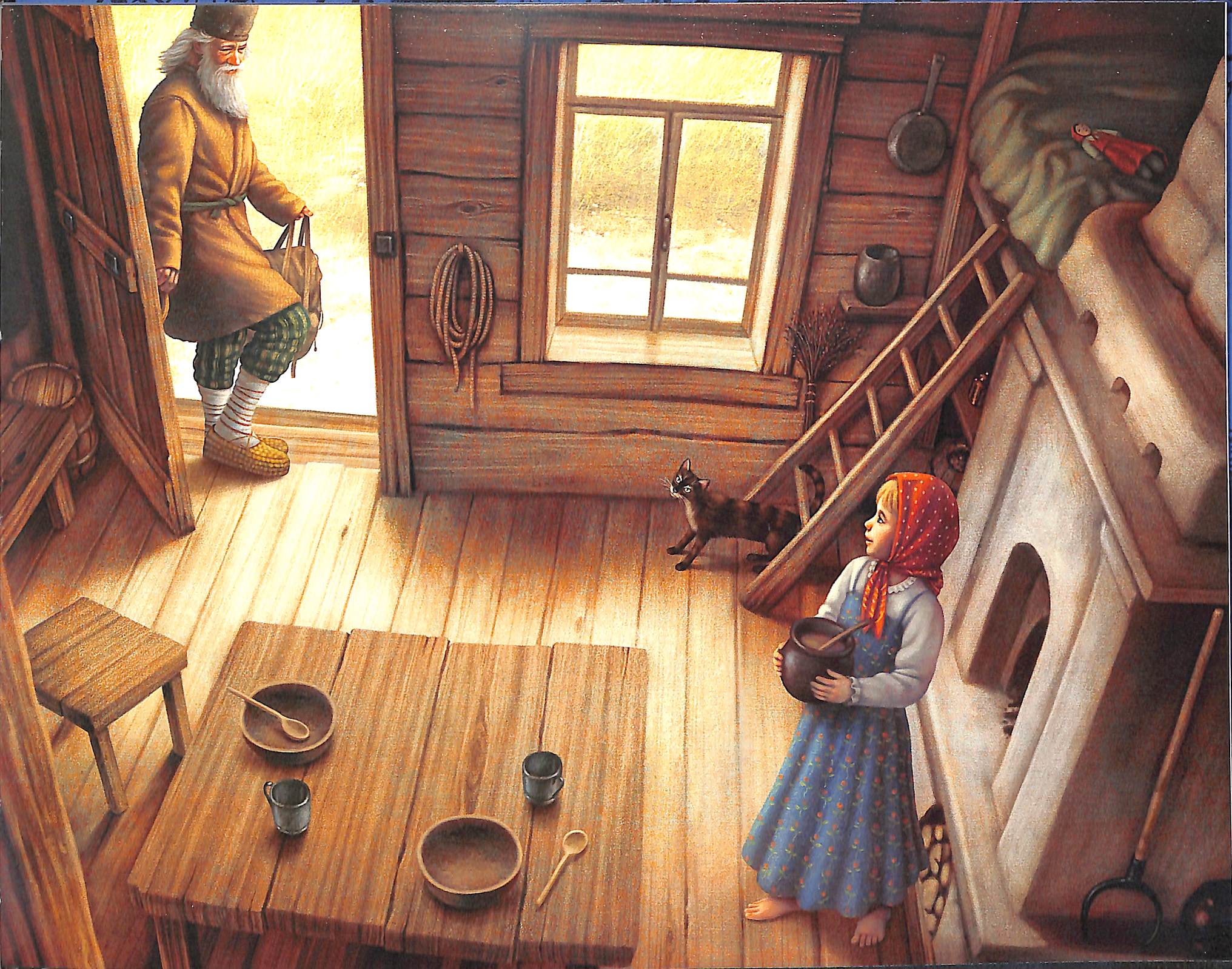 Вглядываемся в Дарёнку и кошку Мурёнку. Живости нет, художник работает в теме вселенской печали людей и кошек.