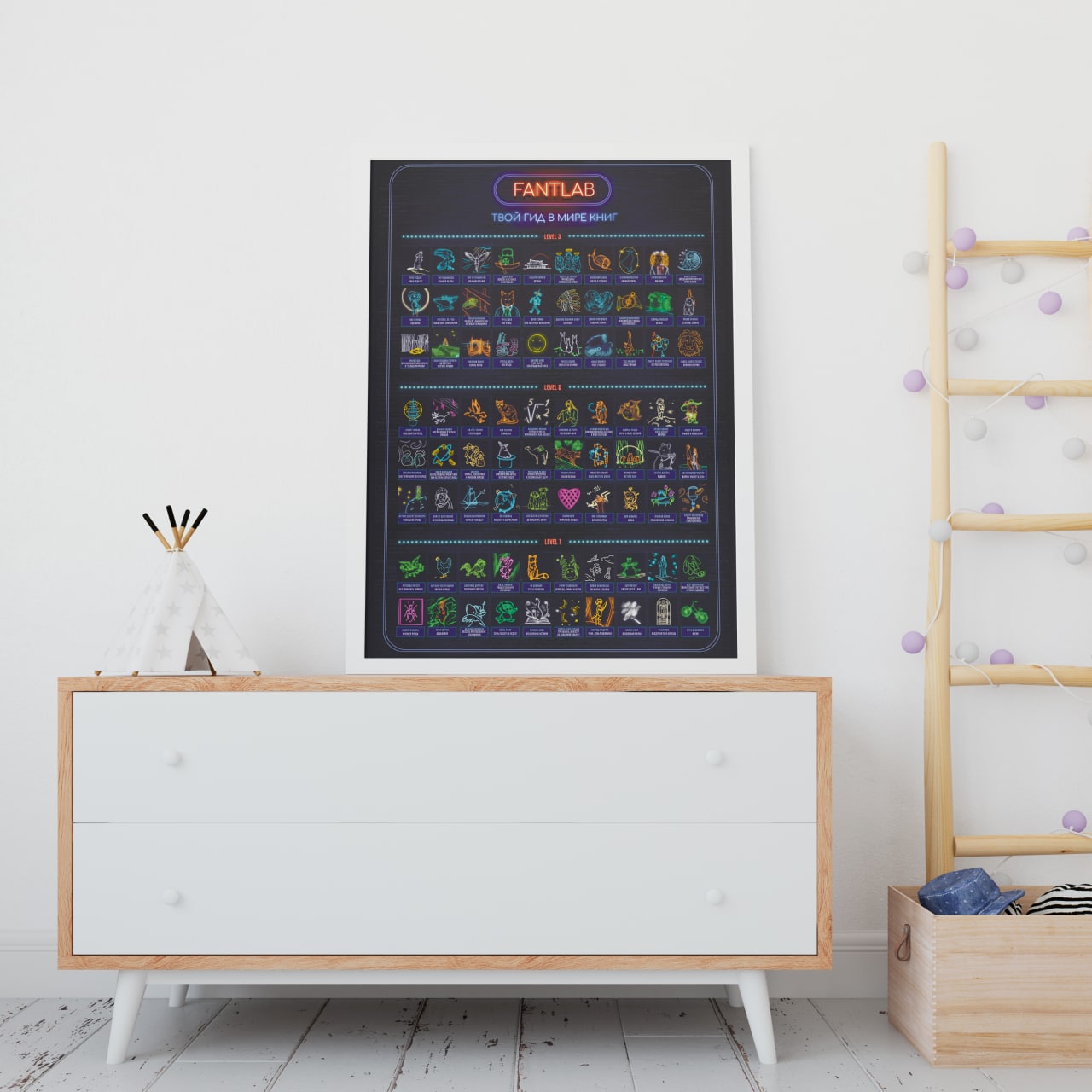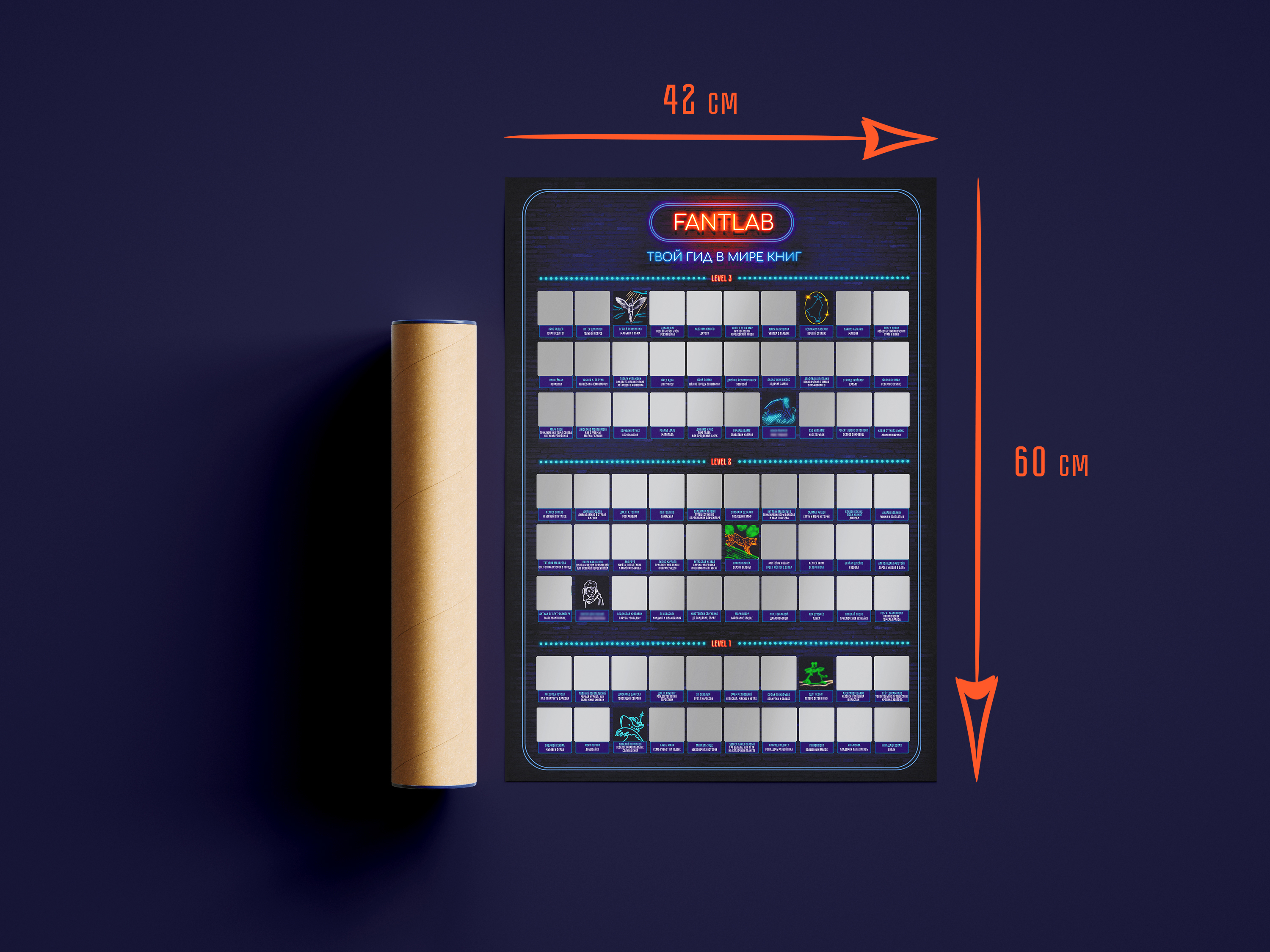 Всего в списке 80 книг, рекомендуемых FantLab-ом к прочтению, разделенных на 3 этапа, согласно возрастной категории юного читателя: 0+, 6+, 12+. В постере есть как произведения короткого жанра, так и объёмные циклы. Скретч-постер, предполагающий простое правило «Прочитано? Сотри напыление!», призван приобщить ребёнка к чтению, сформировать хороший литературный вкус. Состав произведений подбирался уважаемыми библиографами сайта с использованием инструментария самого FantLab и накопленного на нём читательского опыта.